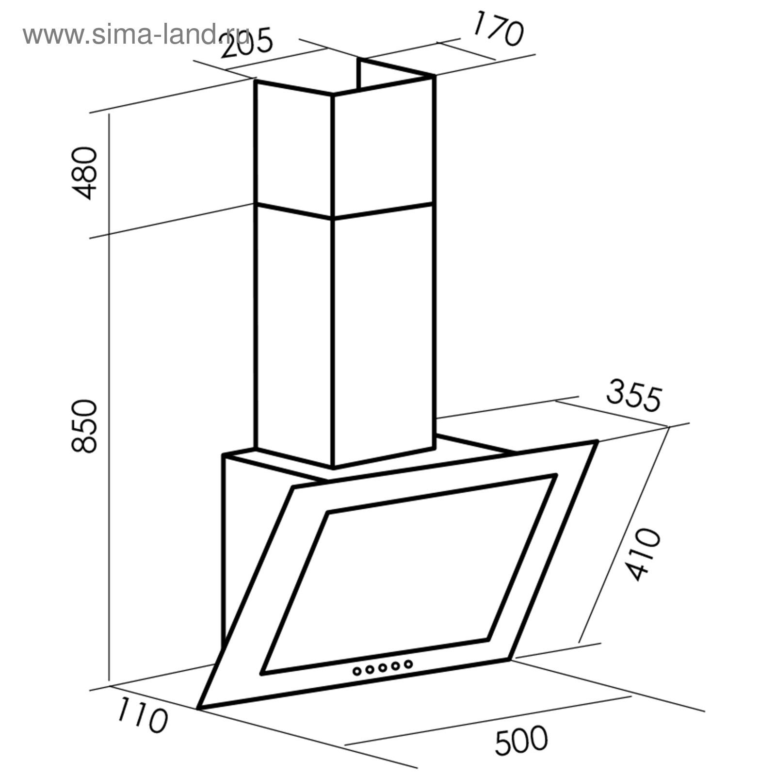 Вытяжка MBS GALTONIA 150 GLASS BLACK, наклонная, 750 м3/ч, 3 скорости, 50 см, стекло/чёрная