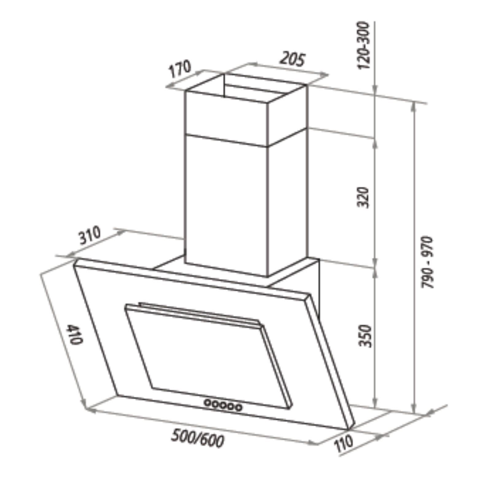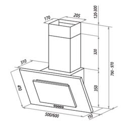 Вытяжка HOMSair BELL 50, наклонная, 650 м3/ч, 3 скорости, 50 см, белая