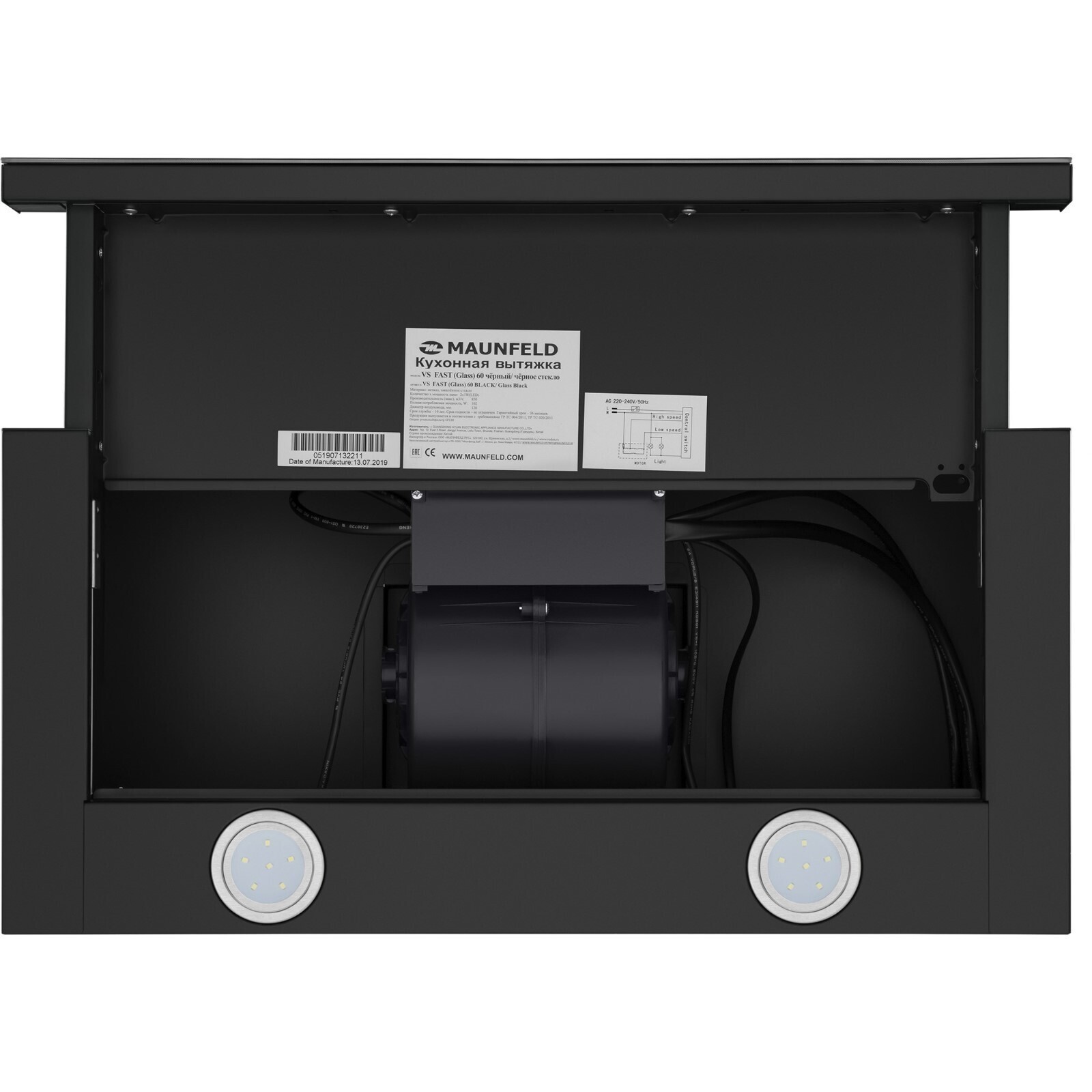 Вытяжка MAUNFELD VS Fast Glass 60, телескопическая, 850 м3/ч, 2 скорости, 60 см, чёрная