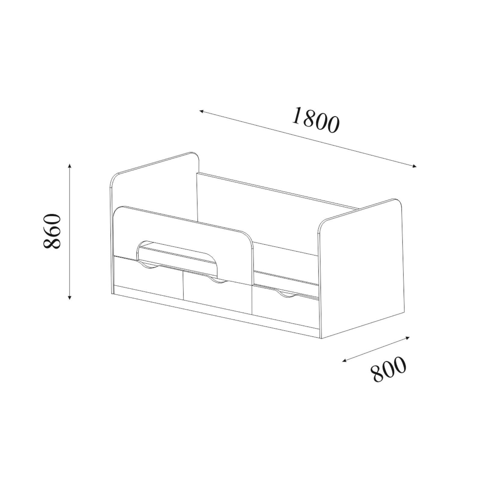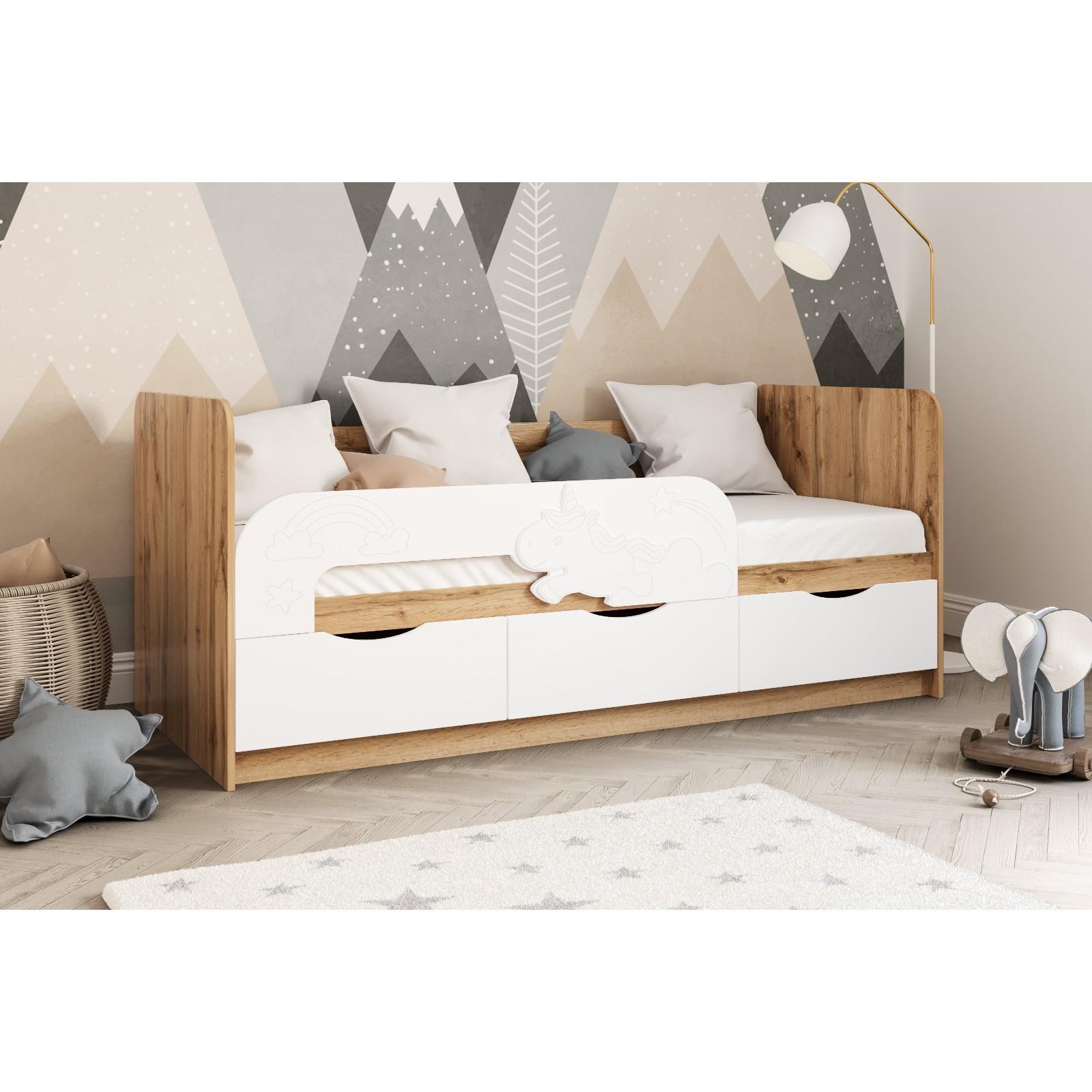 Кровать Долька с ящиками и бортом с/м 1800*800, Белая мат МДФ/ Дуб вотан ЛДСП