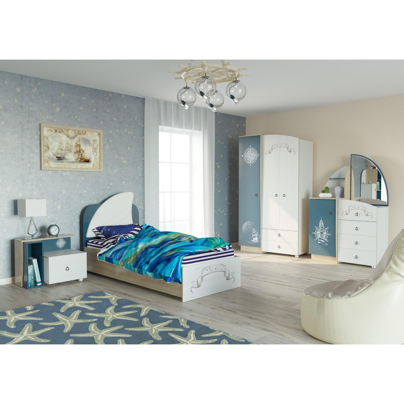 Кровать односпальная Бриз 840х2035х1100 Дуб ривьера/Рамух белый/Синий Бриз