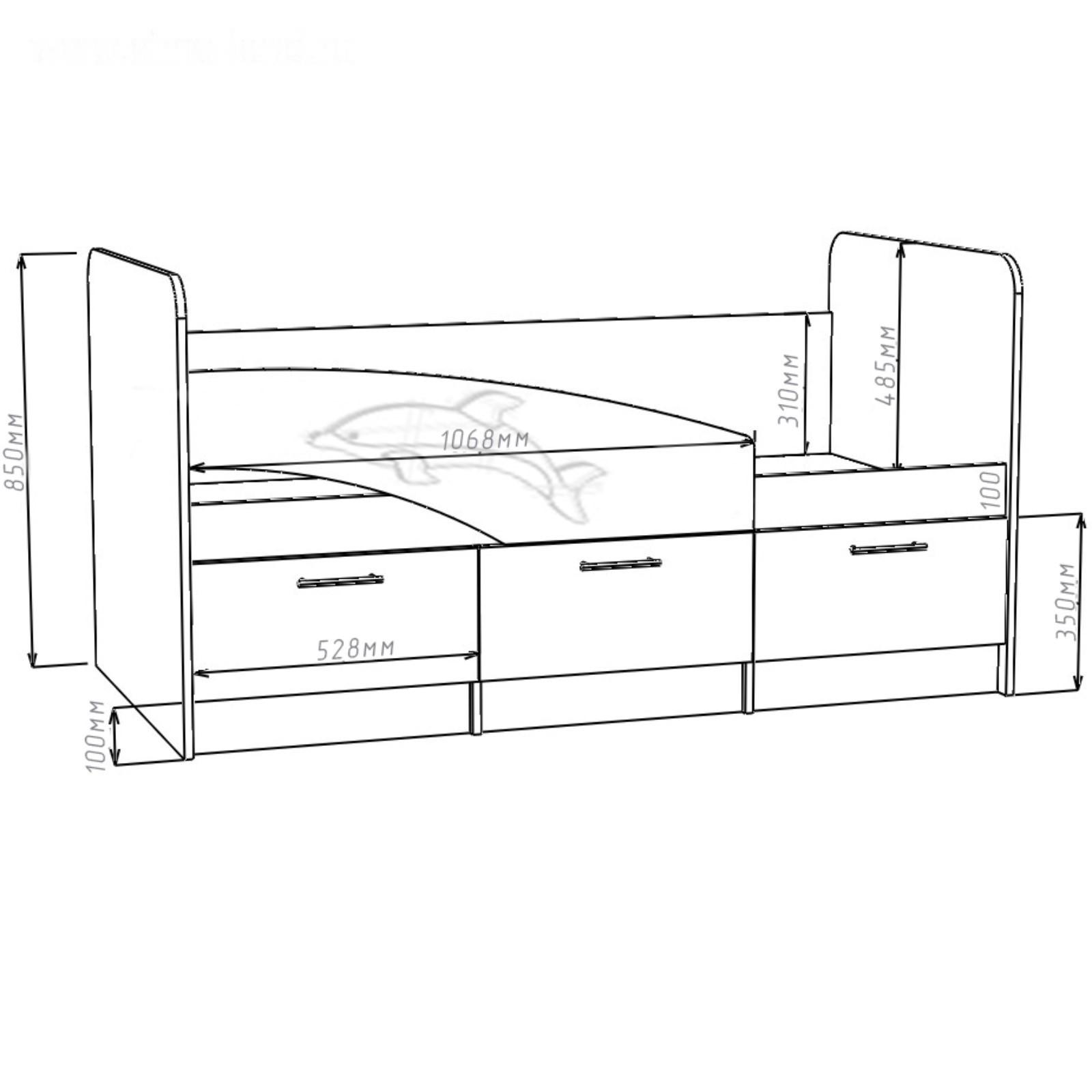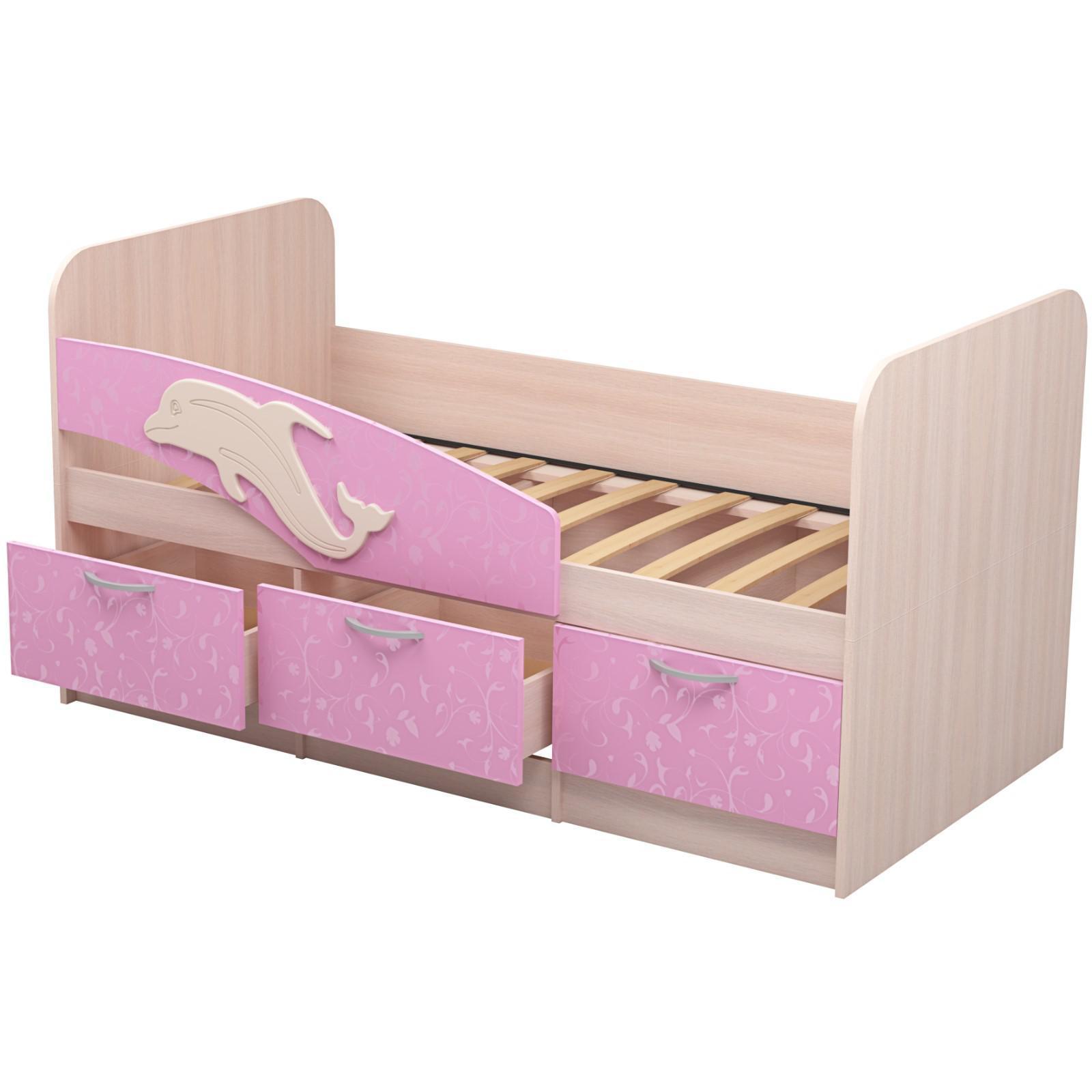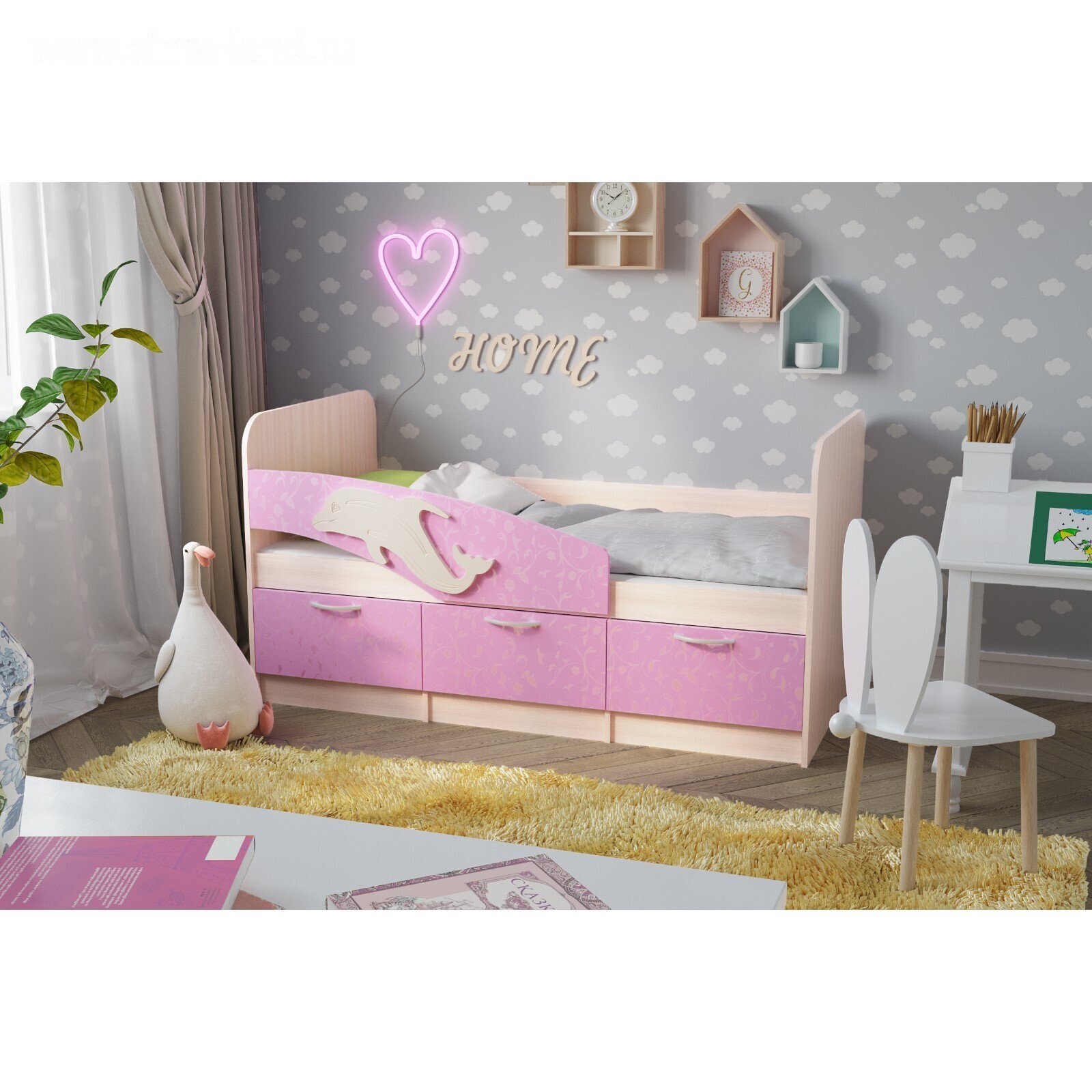 Кровать Дельфин-5 1.6, 1632х850х850, Дуб молочный/Ламарти розовый