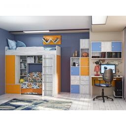 Кровать 2000 Тетрис 347М, 2038х838х671, Дуб белый крафт/Капри синий