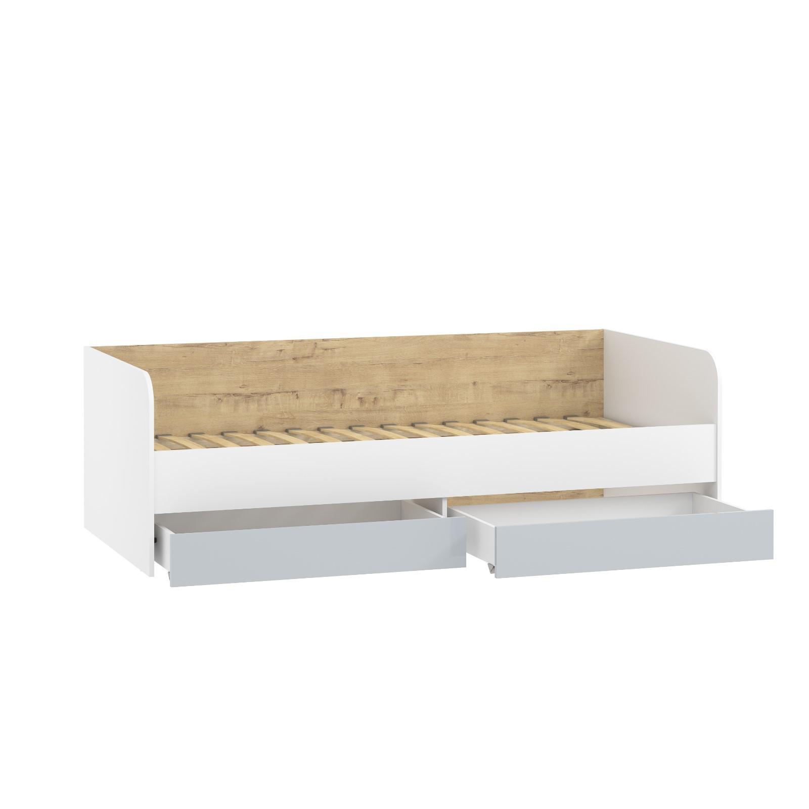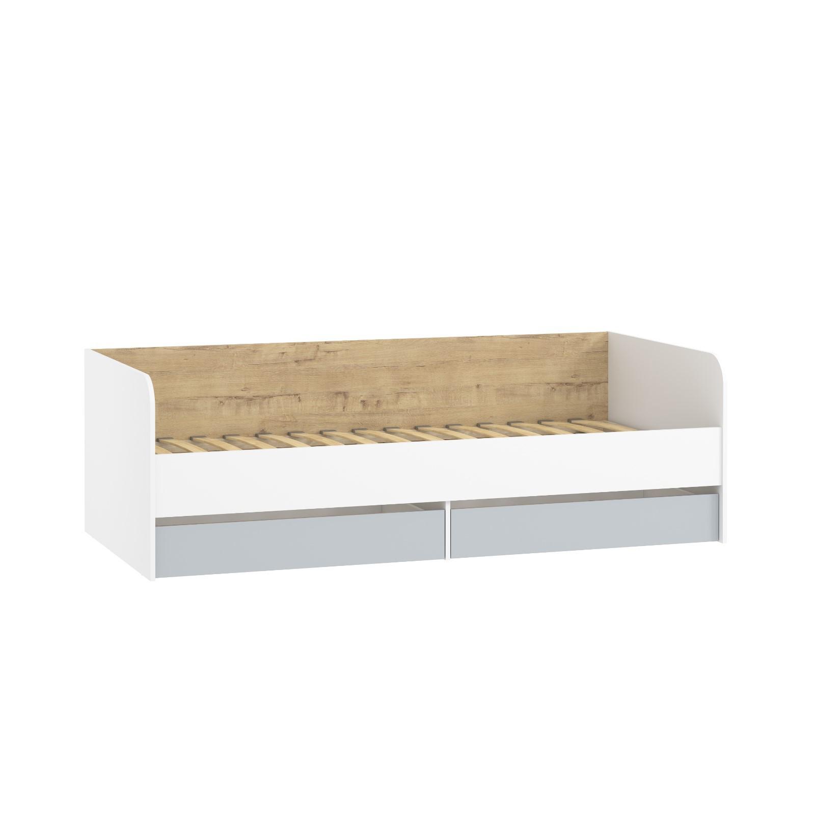 Кровать Морти с ящиками с основанием, с/м 900х2000, Серый/Белый/Дуб бунратти