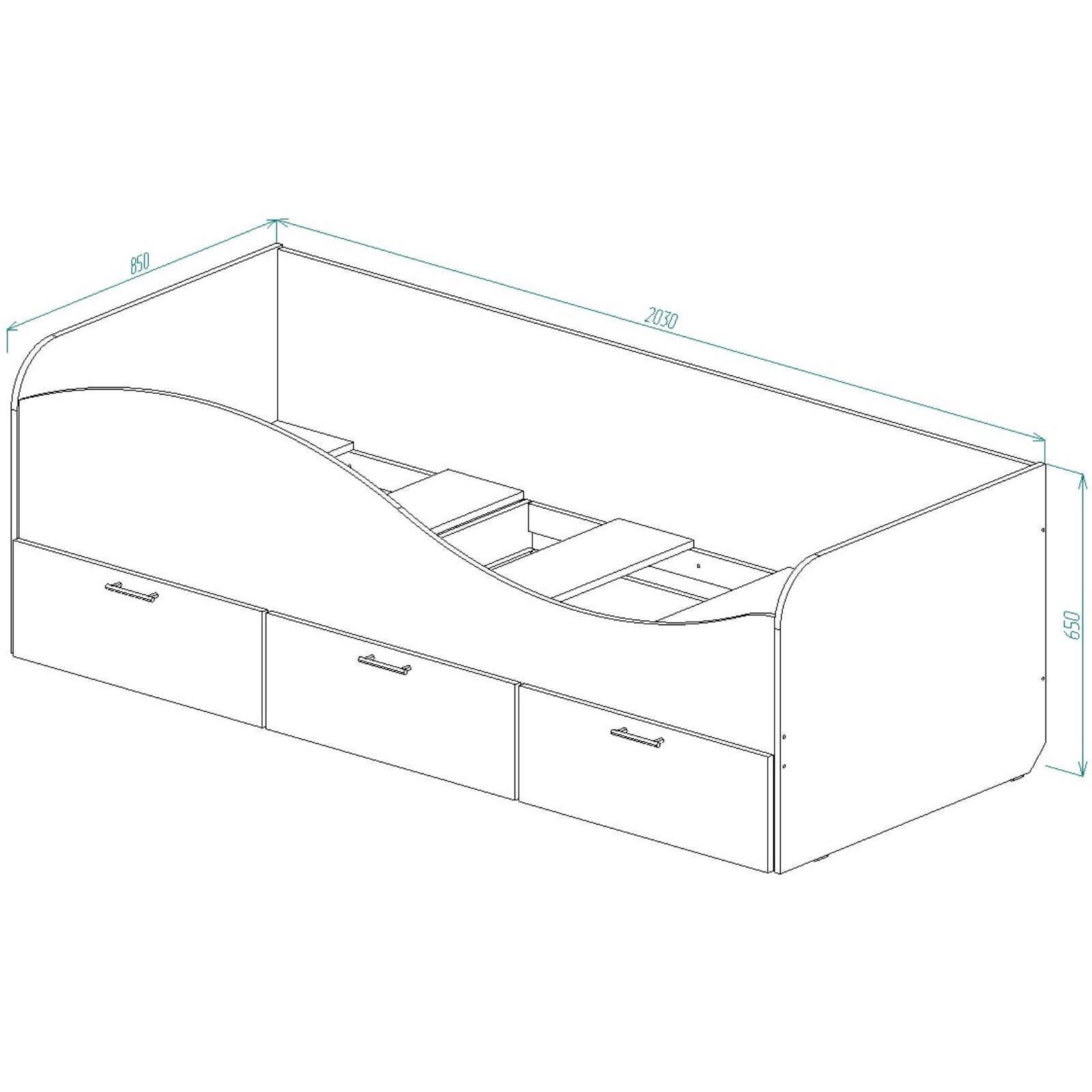Кровать для детской с ящиками Кр-3 650*2030*850 Белый/корпус Дуб Сонома