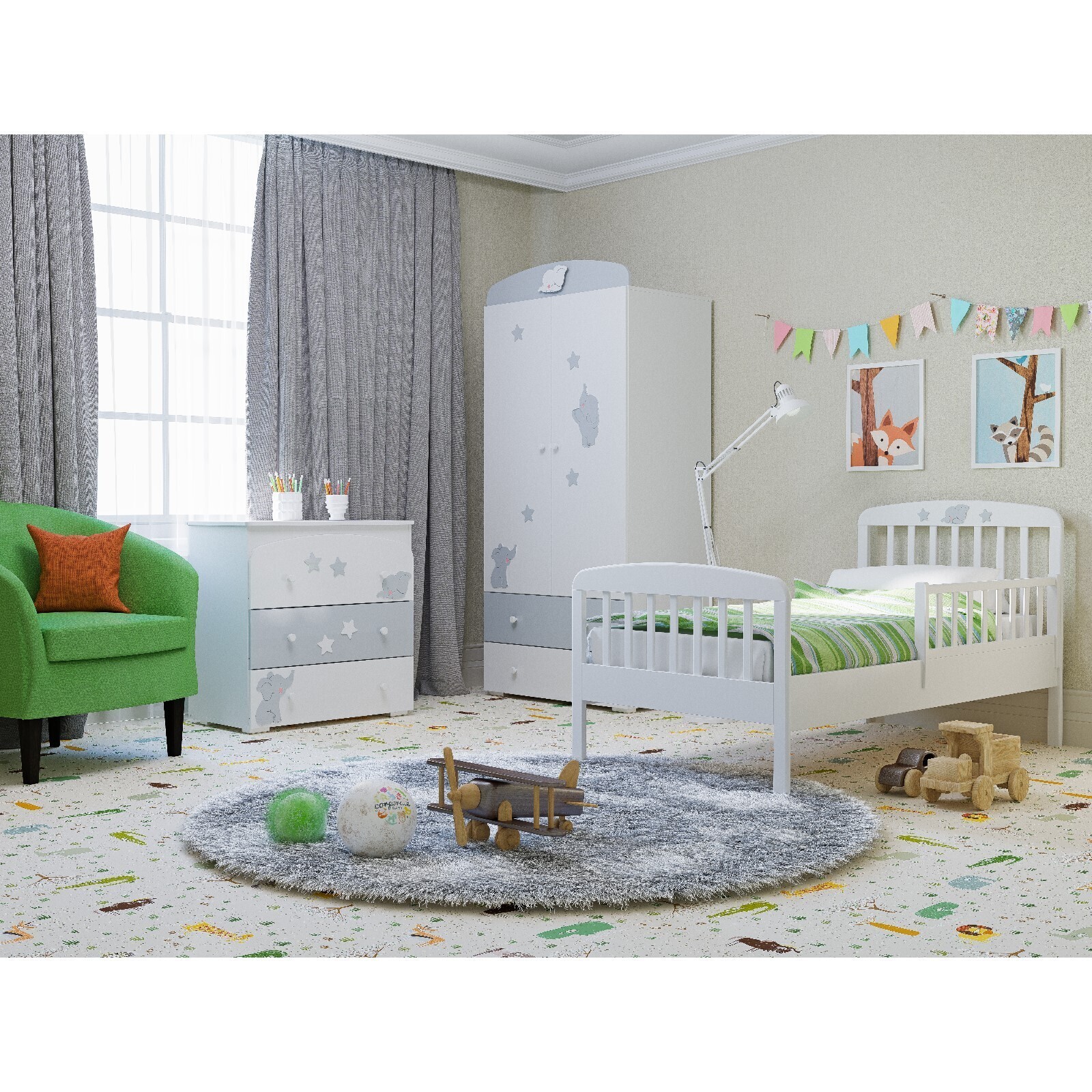 Кровать Лилу, Слоники, 1654x884x900, Белый/Серая эмаль