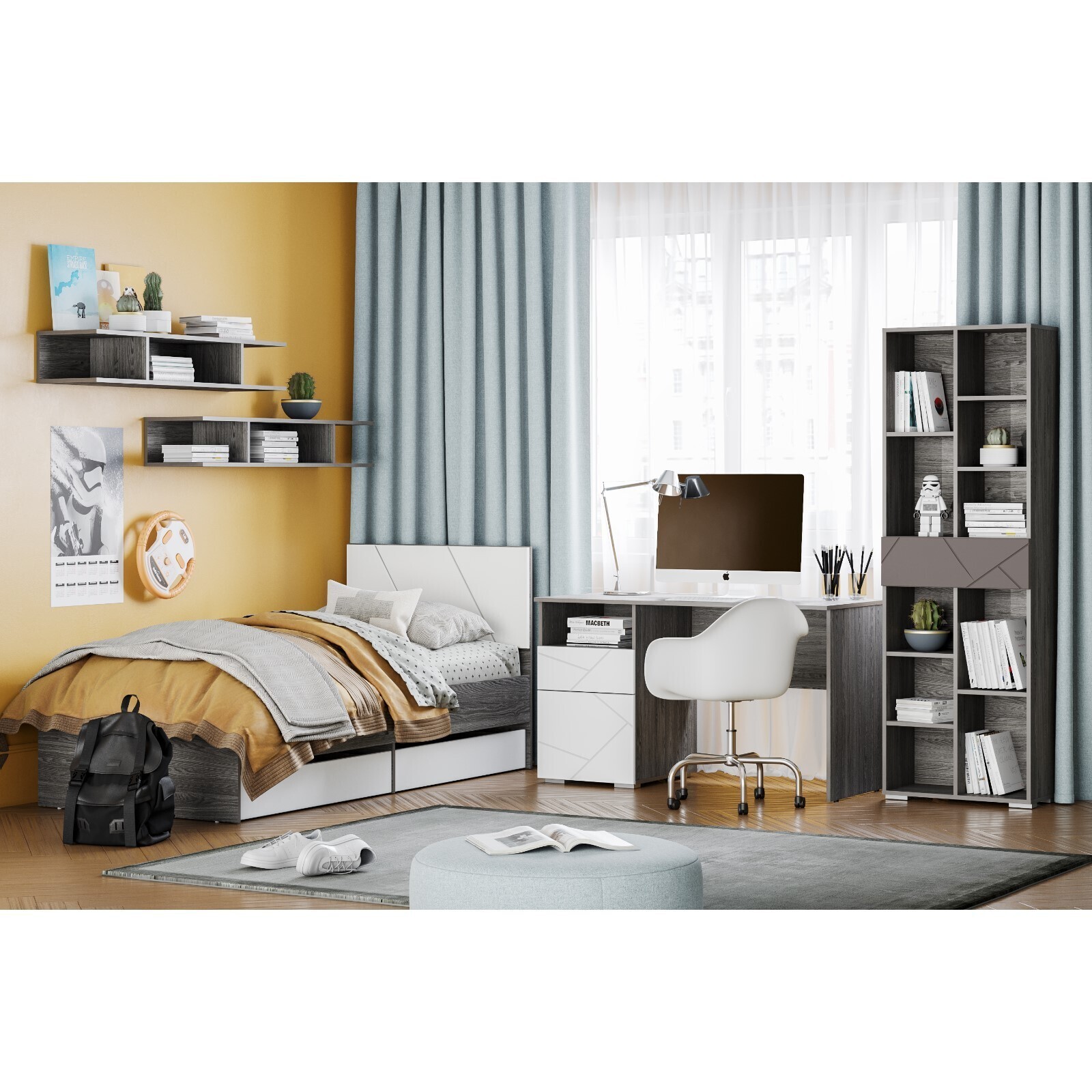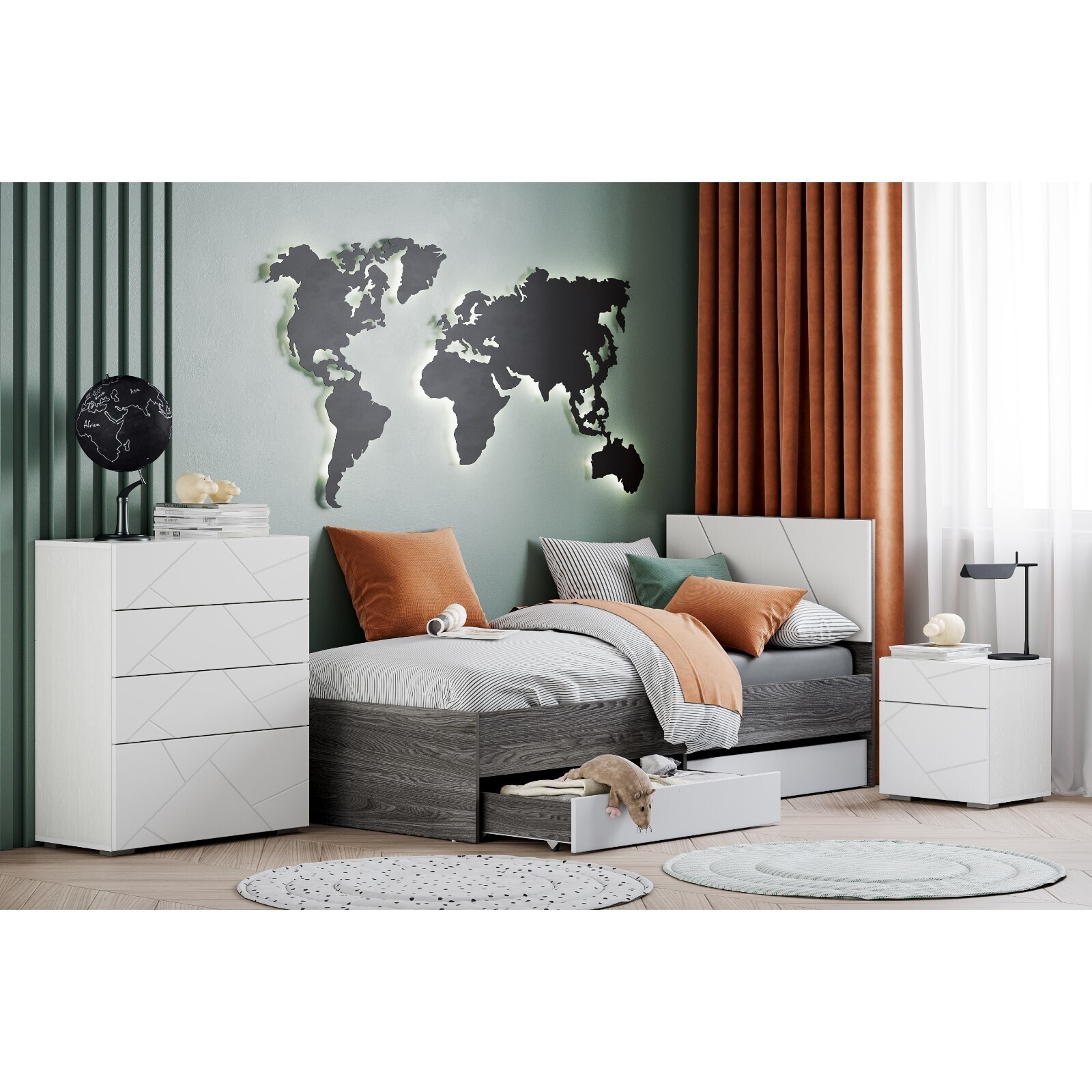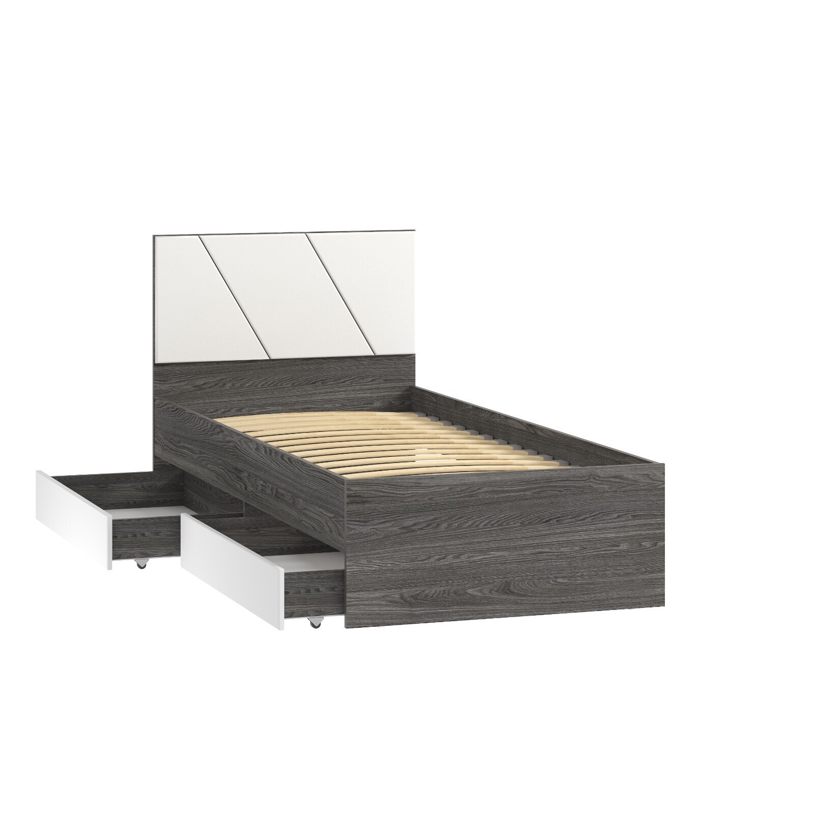 Кровать Summit с ящиками и основанием, с/м 900х2000, Меренга/Ясень анкор темный