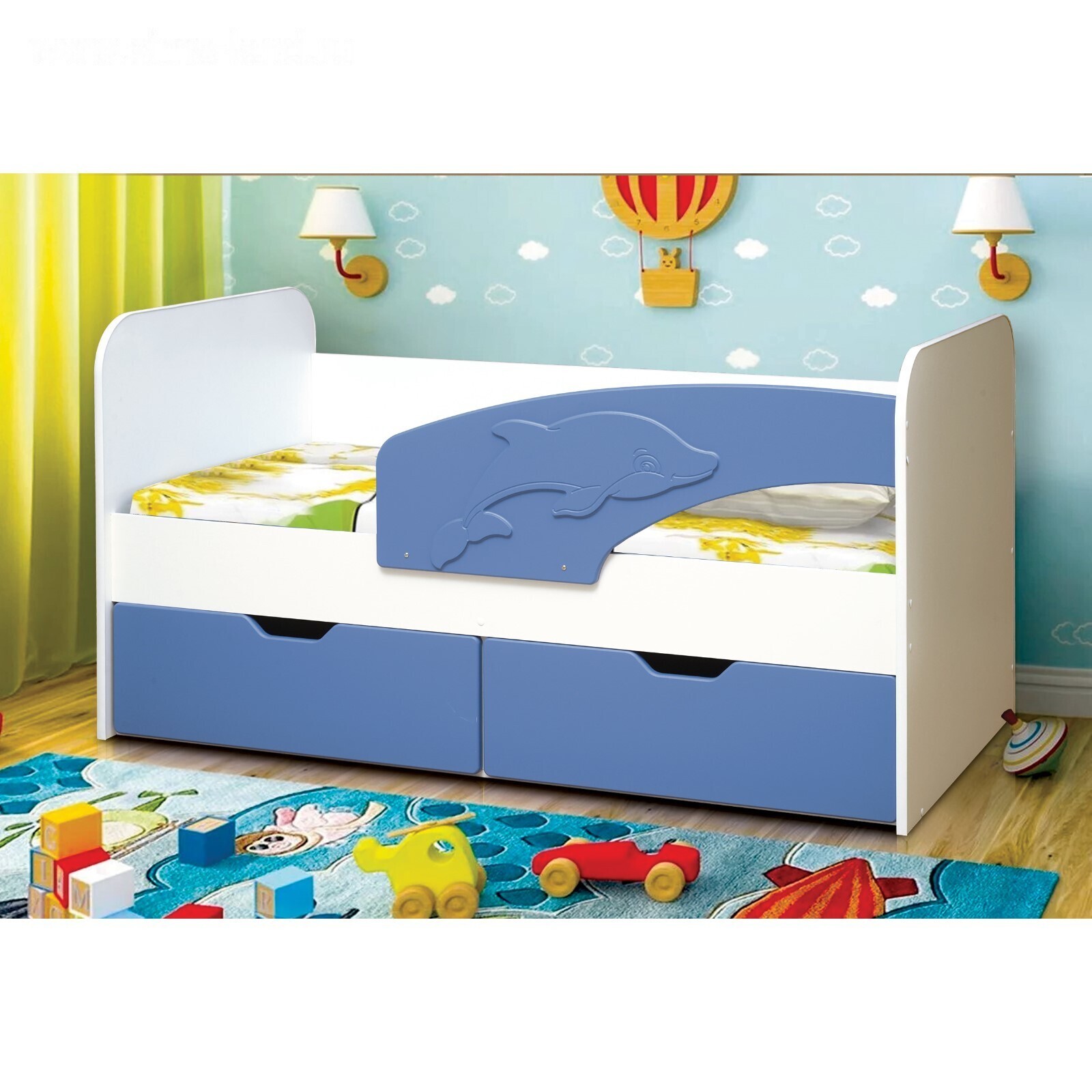Кровать детская «Дельфин», 2 ящика, 800 × 1600 мм, правая, цвет белый / синий матовый