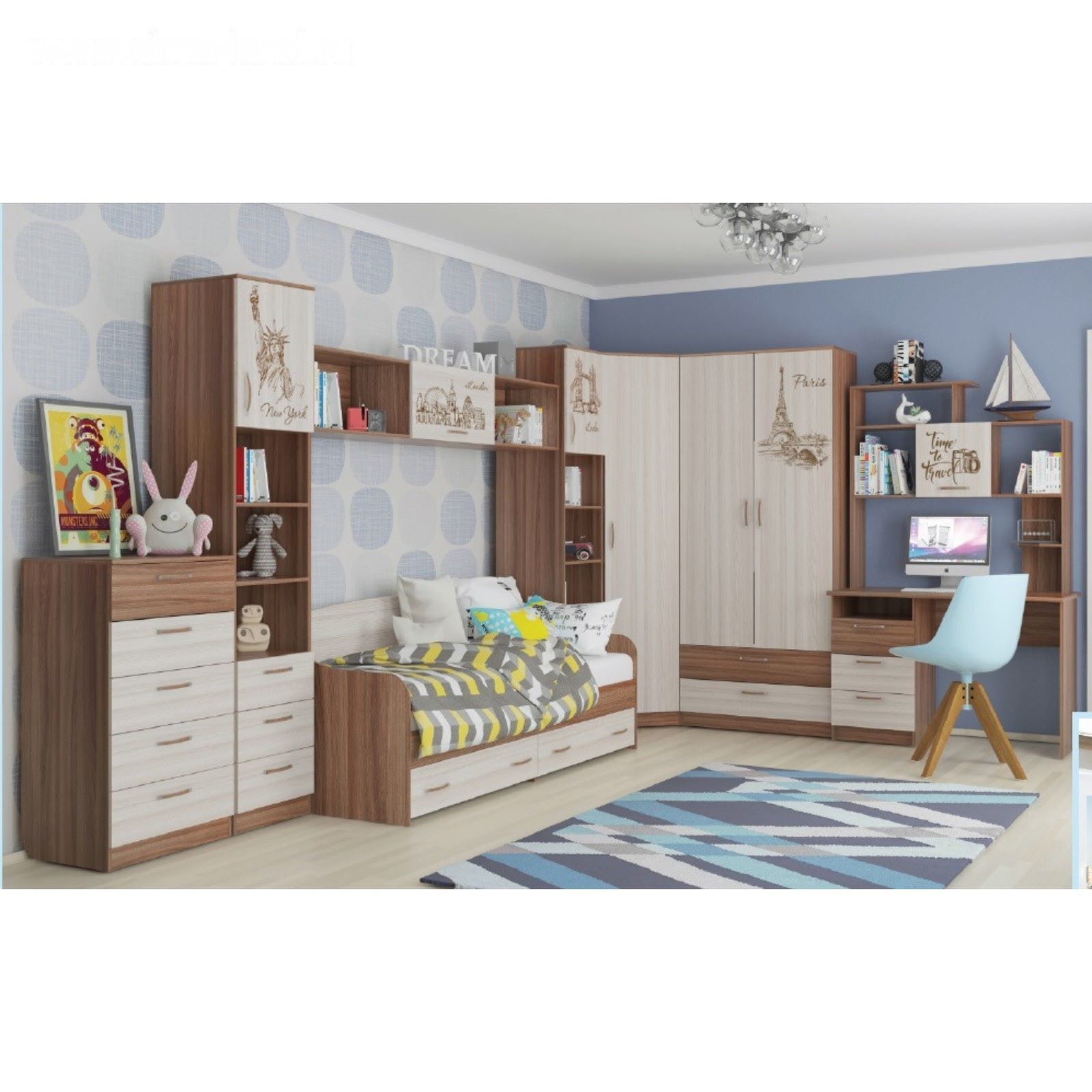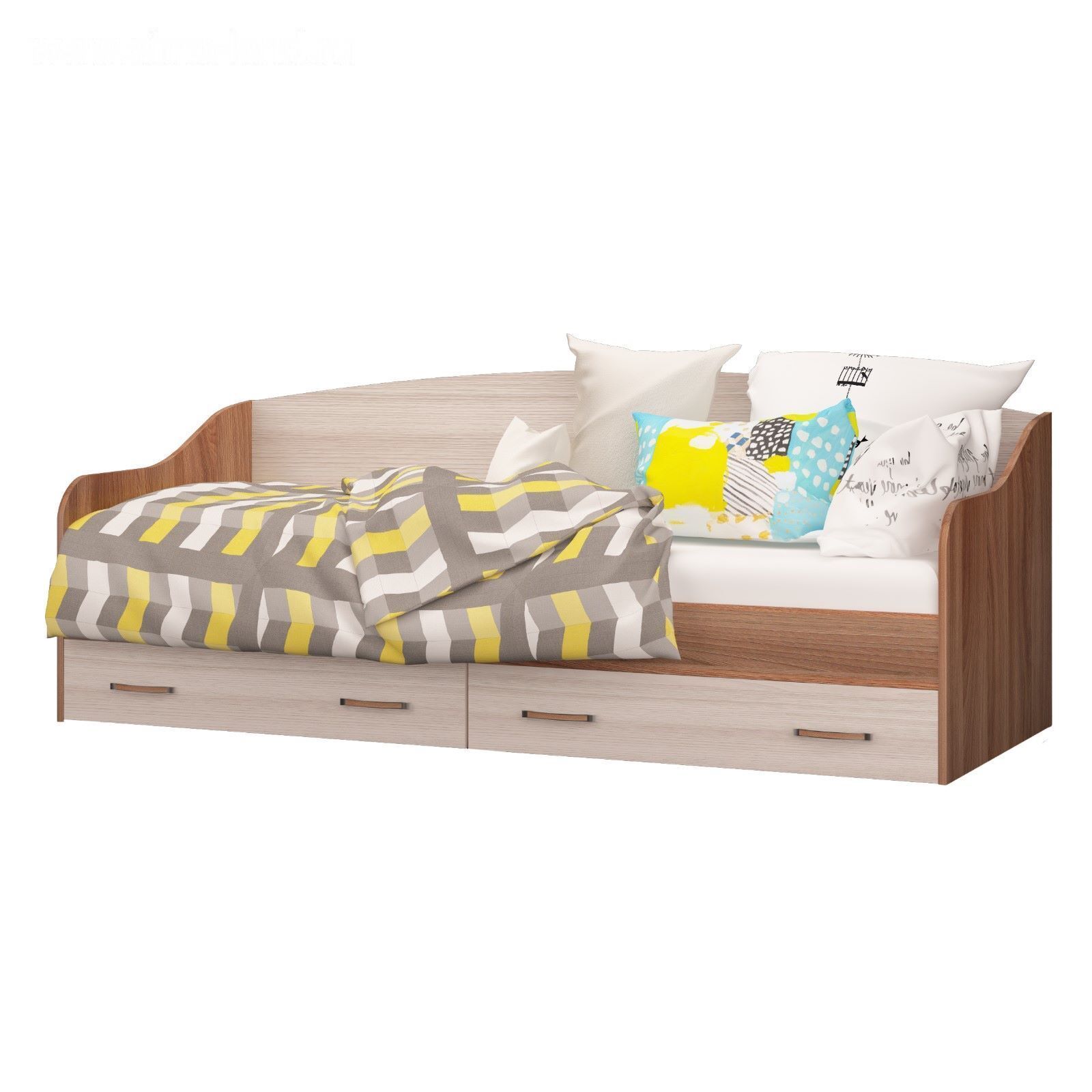 Кровать-софа с двумя ящиками "Вояж", ясень тёмный, ясень светлый