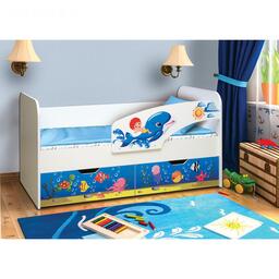 Кровать детская с фотопечатью «Дельфин», 2 ящика, 800 × 1600 мм, правая, цвет корпус белый
