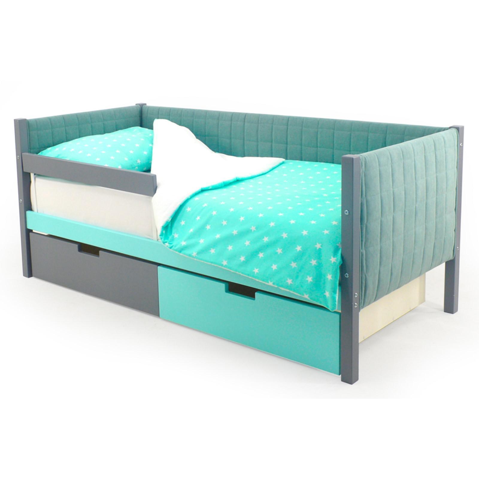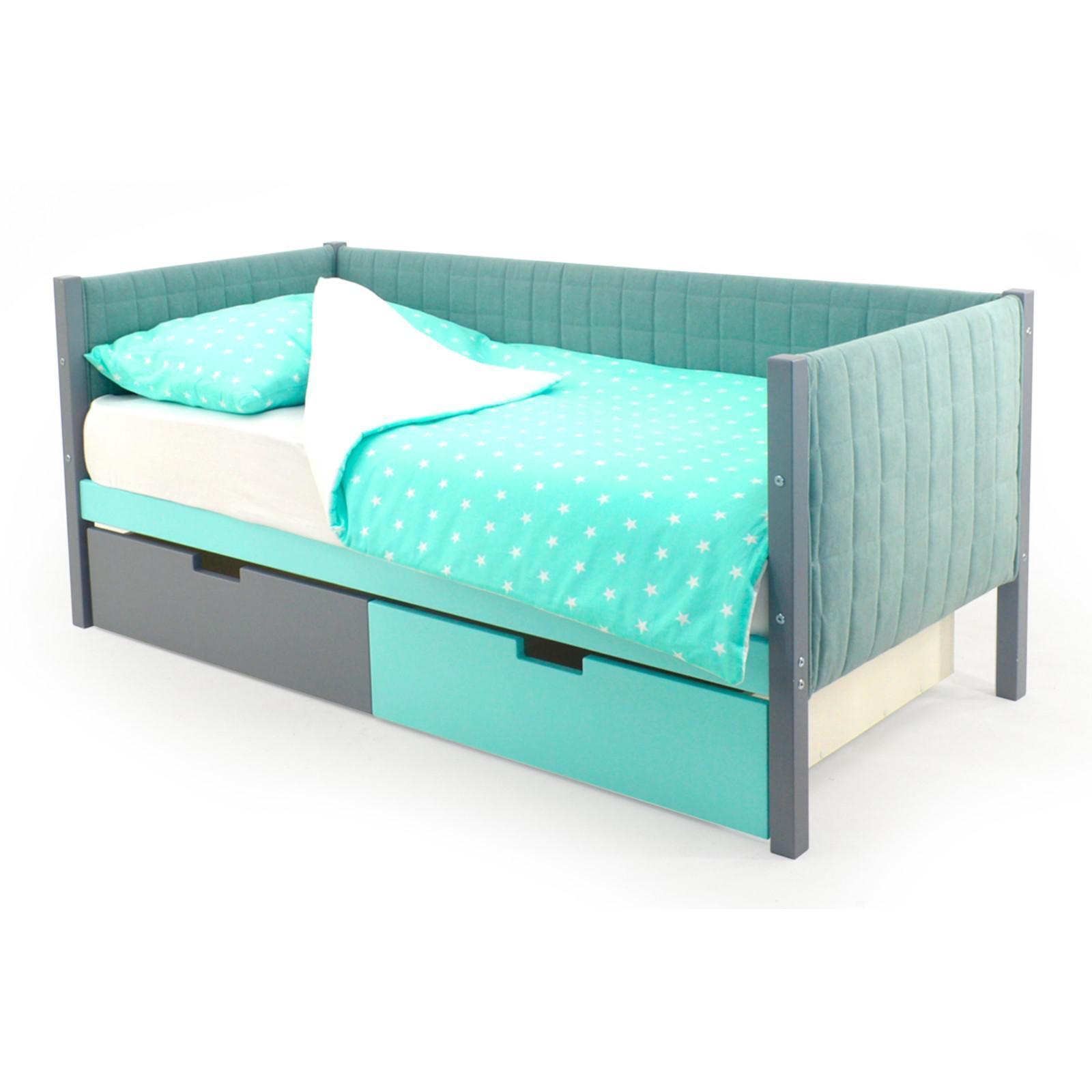 Детская кровать-тахта мягкая Svogen графит-мятный