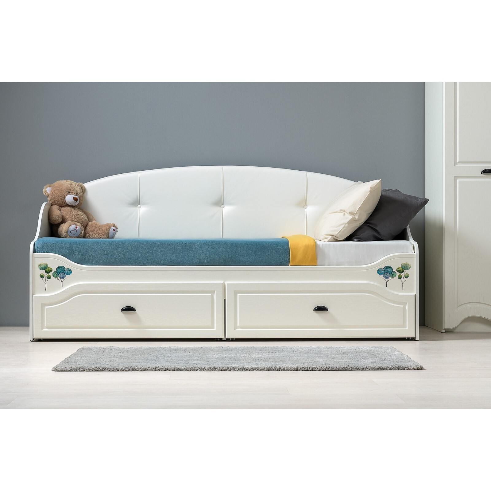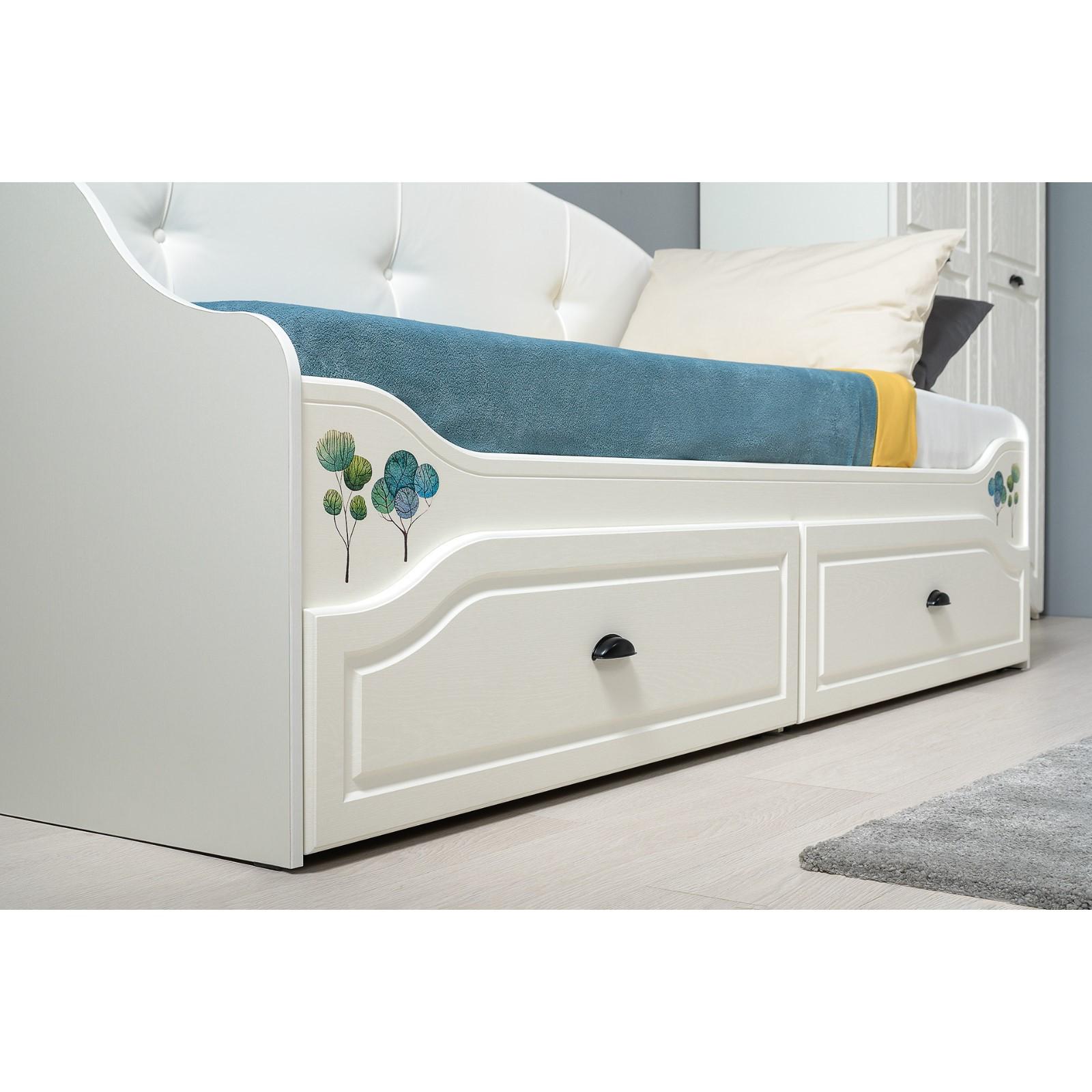 Кровать Роуз 11.38 с ящиками и основанием, 2040х857х971, Белый/ Ясень ваниль
