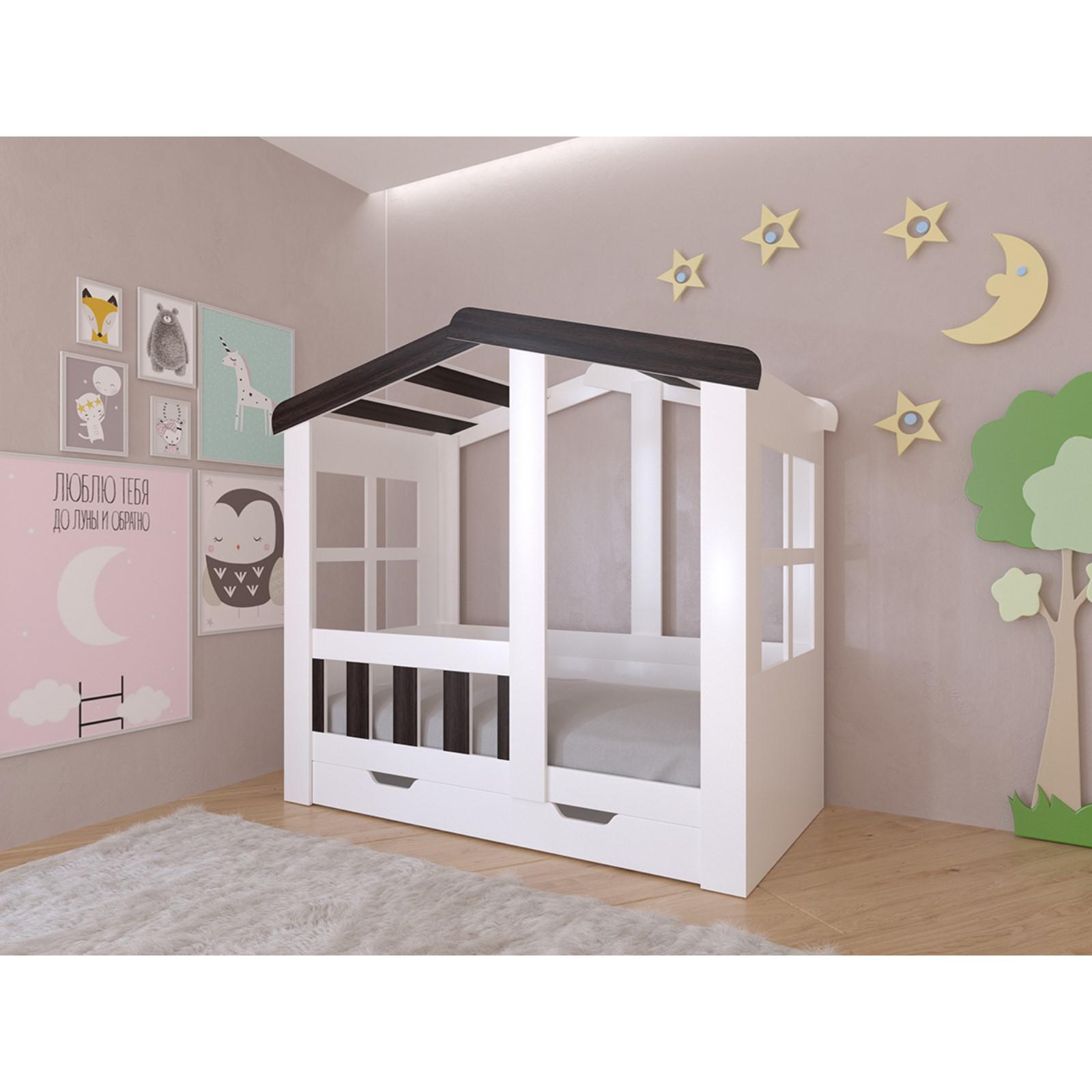 Детская кровать-чердак «Астра домик», с ящиком, цвет белый / венге