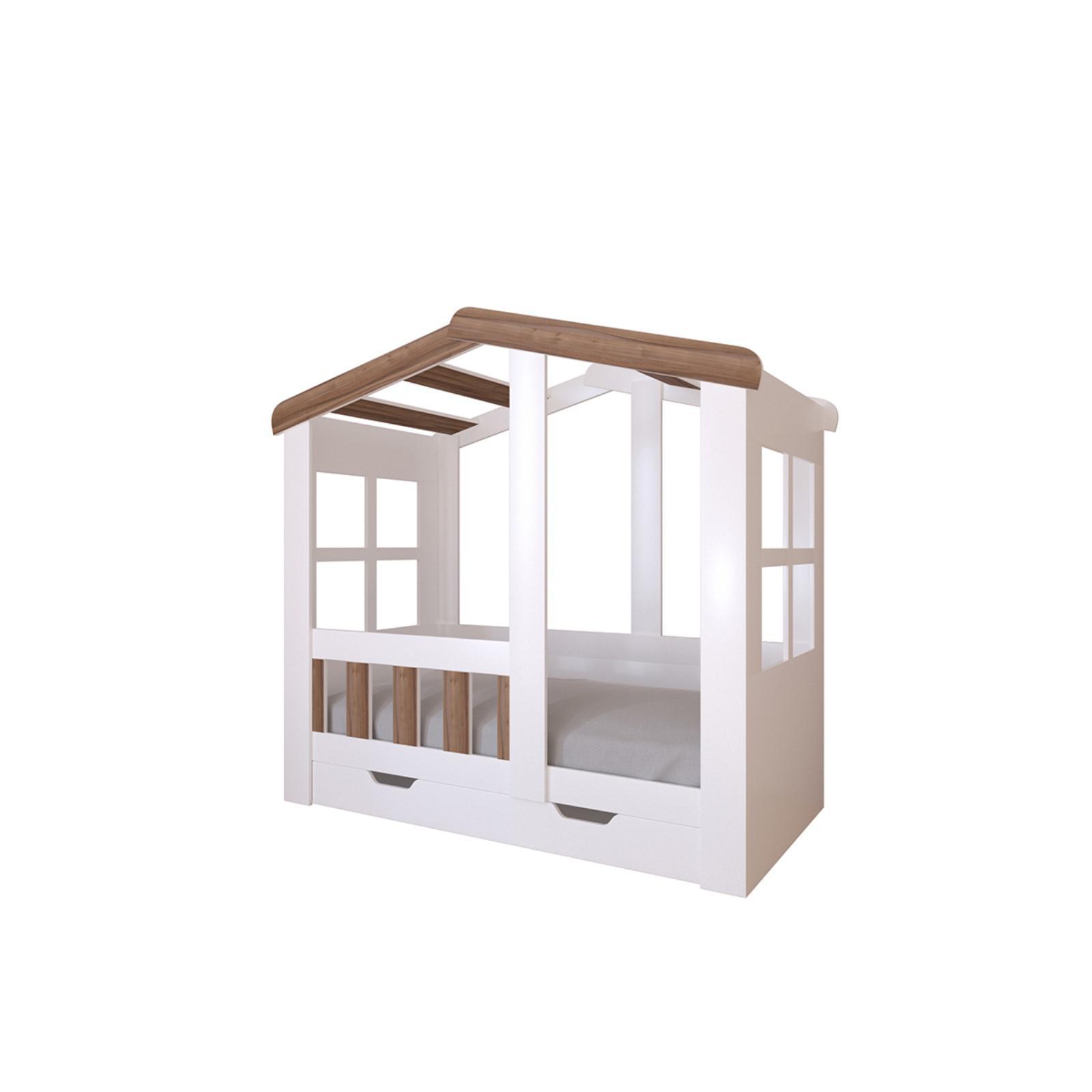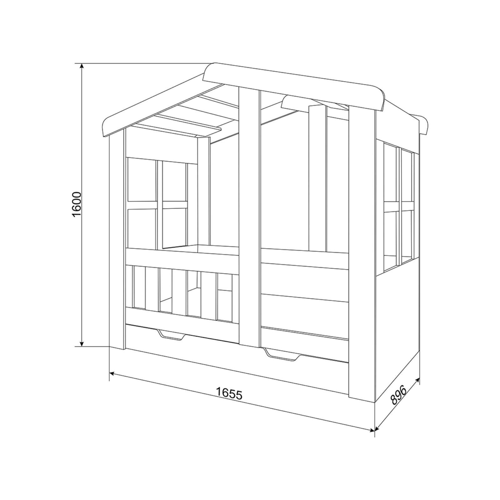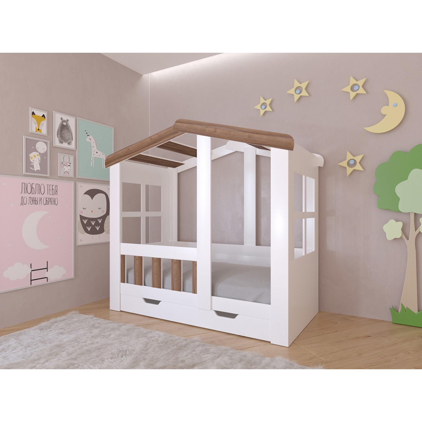 Детская кровать-чердак «Астра домик», с ящиком, цвет белый / орех