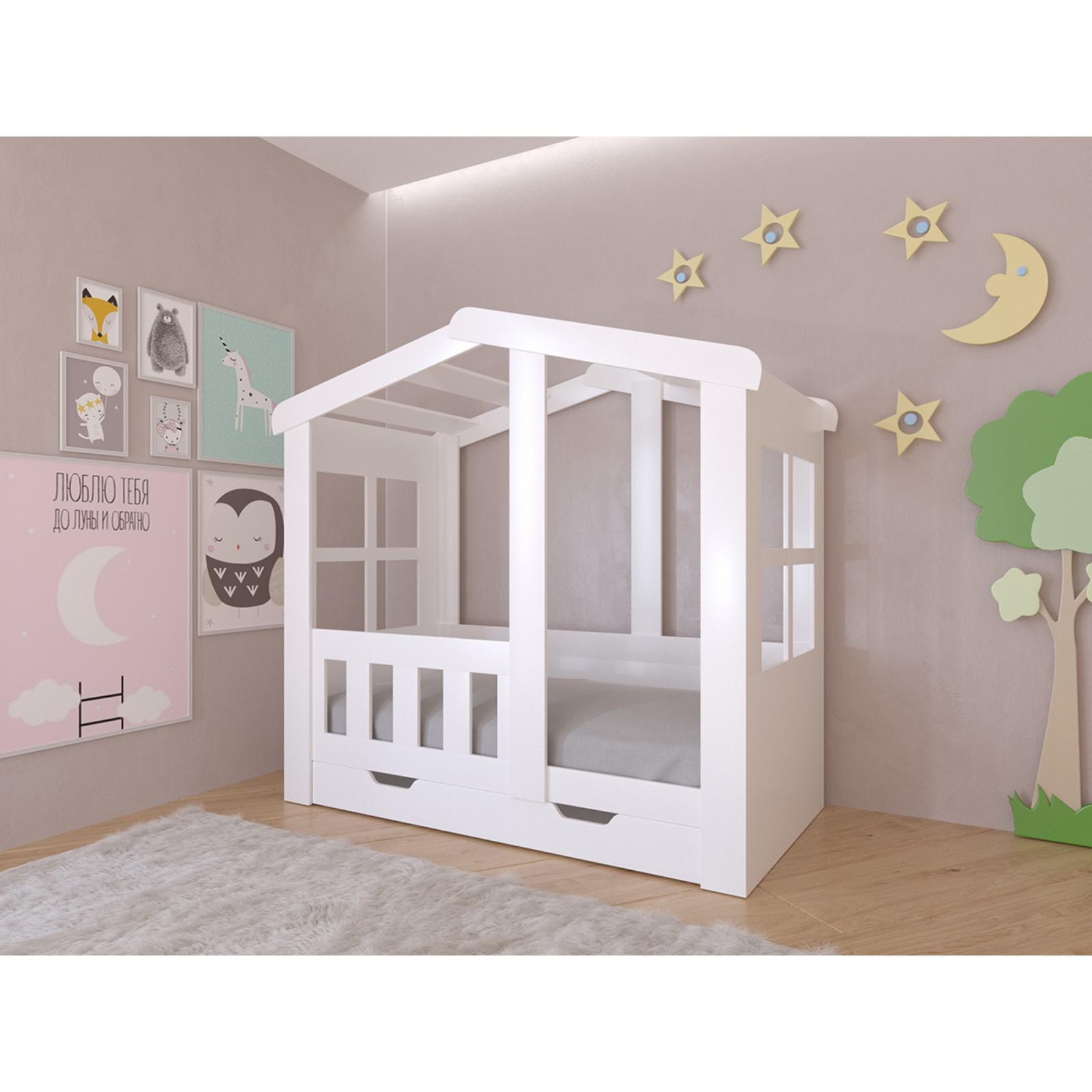 Детская кровать-чердак «Астра домик», с ящиком, цвет белый / цвет белый