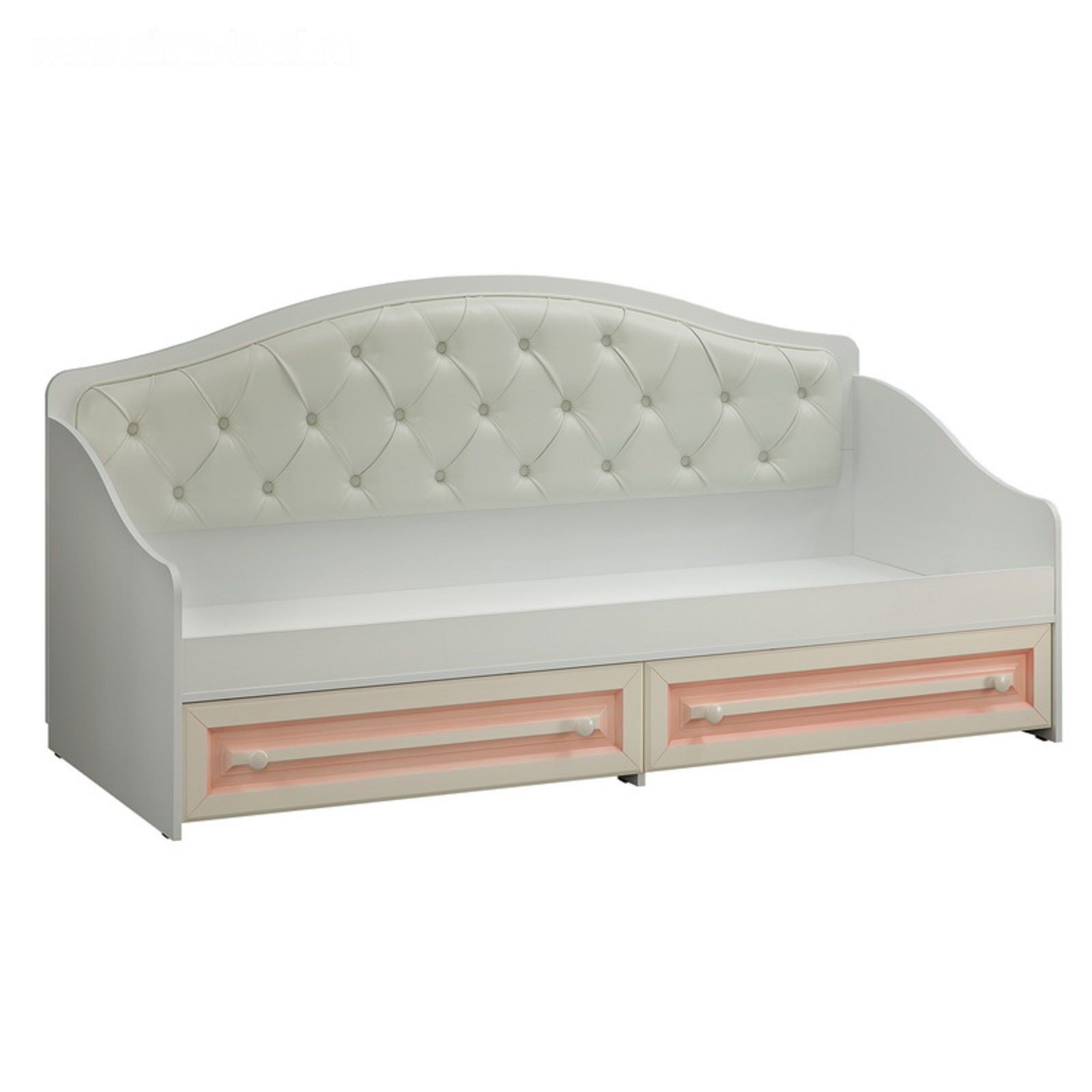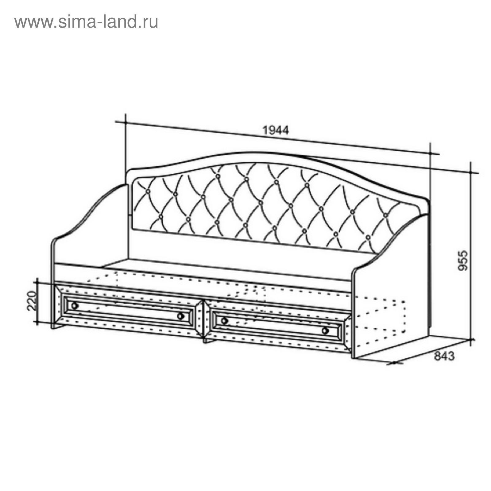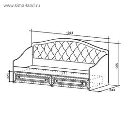 Софа практична и удобна в использовании. Помимо спального места, она имеет два выдвижных ящика для хранения постельного белья, подушек и одеял. Спинка украшена каретной стяжкой из экокожи.
