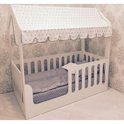 Детская кровать-домик без ящика, белый, 800х1600, текстиль 2