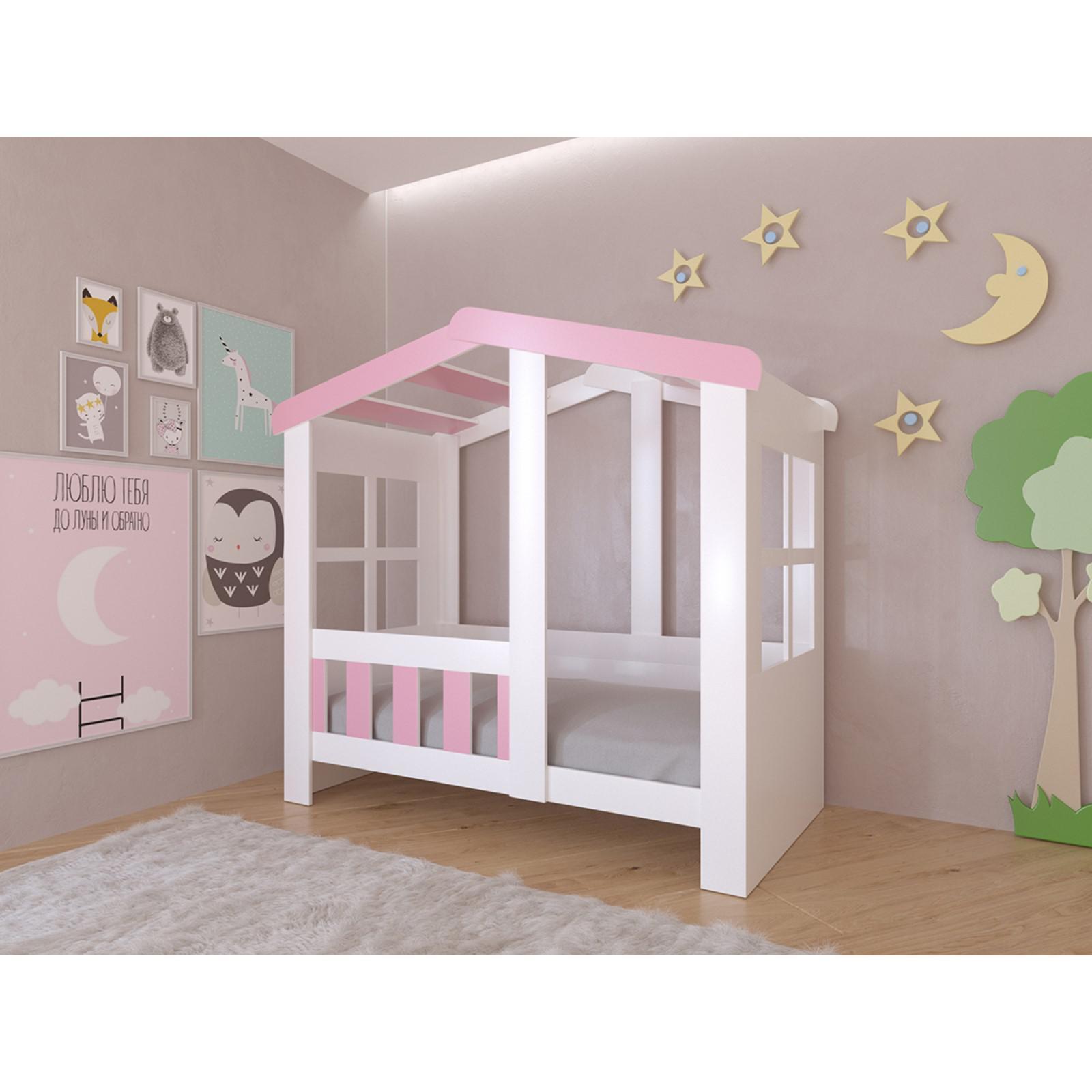 Детская кровать-чердак «Астра домик», без ящика, цвет белый / розовый