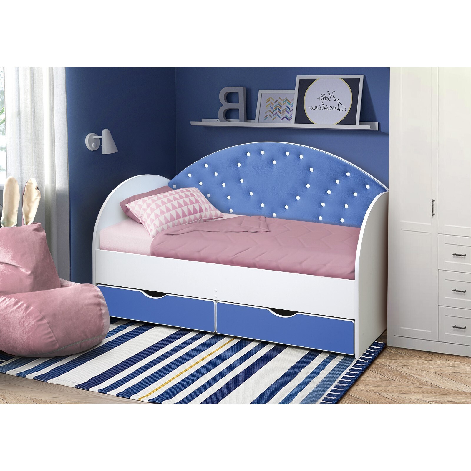 Кровать детская с мягкой спинкой «Сердце №2», 800 × 1600 мм, без бортика, белый / синий