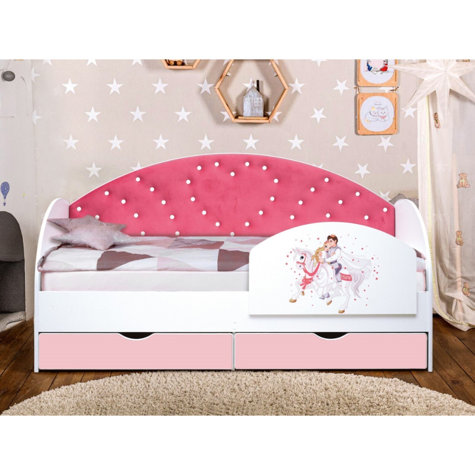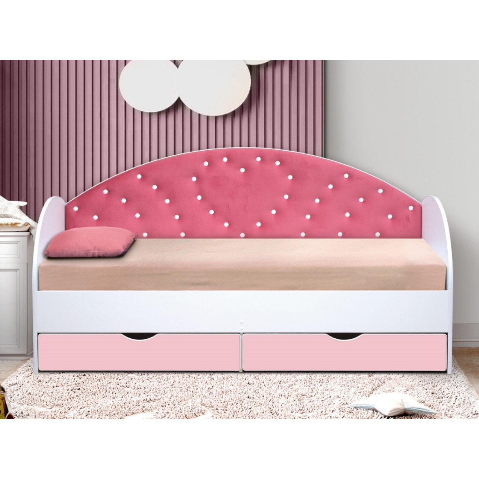 Кровать детская с мягкой спинкой «Сердце №1», 800 × 1600 мм, без бортика, белый / розовый