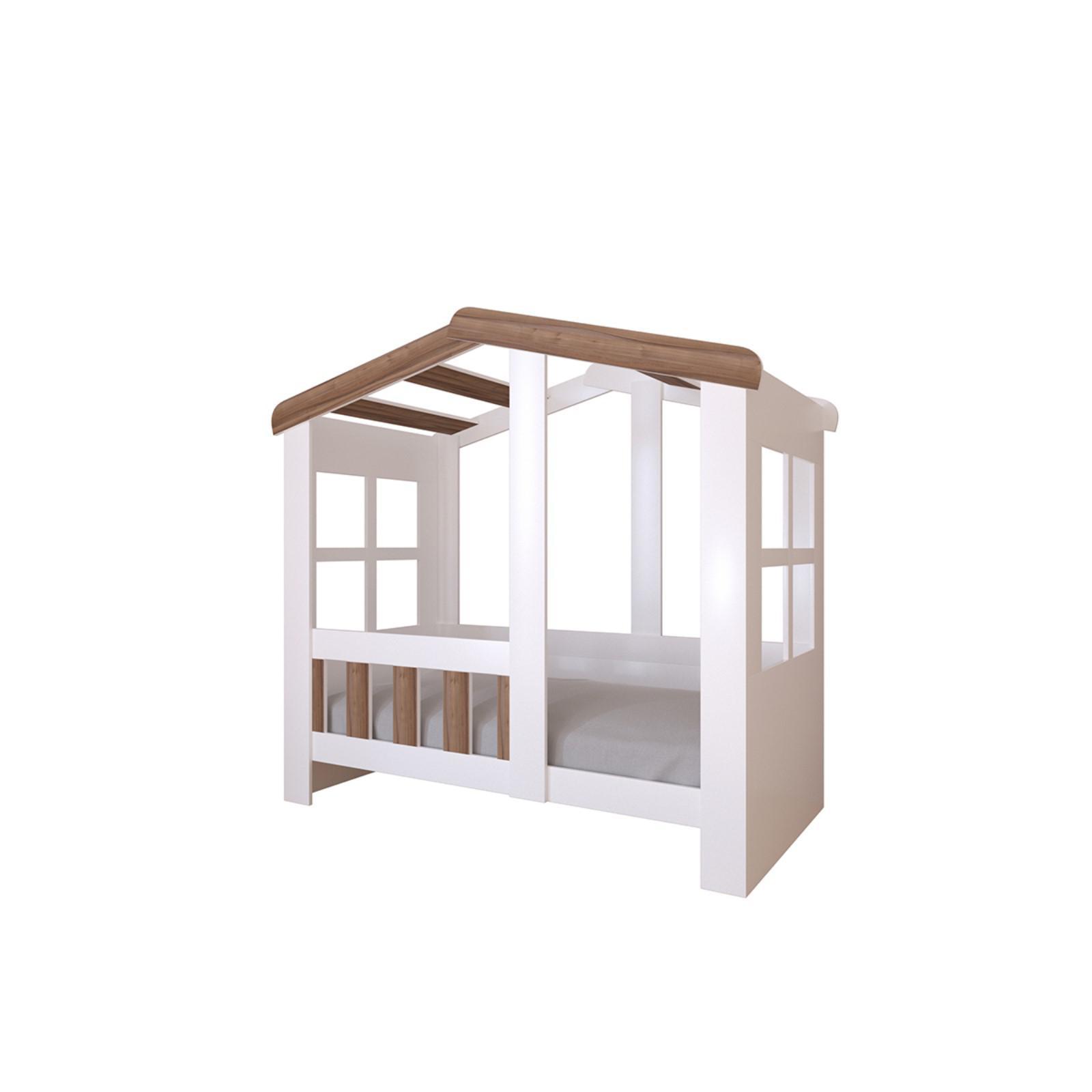 Детская кровать-чердак «Астра домик», без ящика, цвет белый / орех