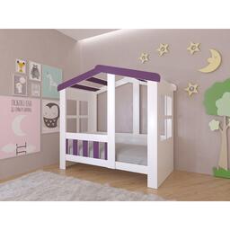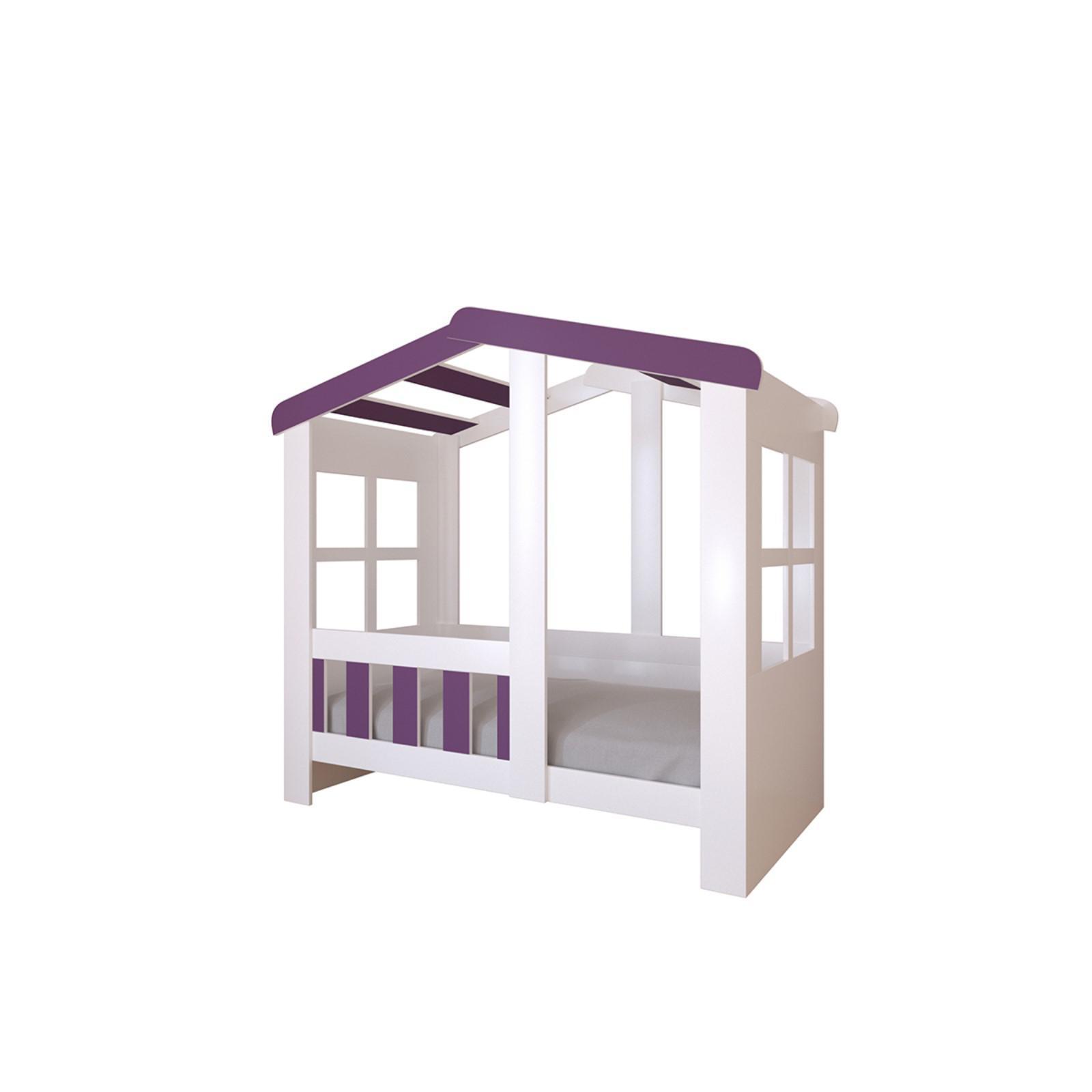 Детская кровать-чердак «Астра домик», без ящика, цвет белый / фиолетовый