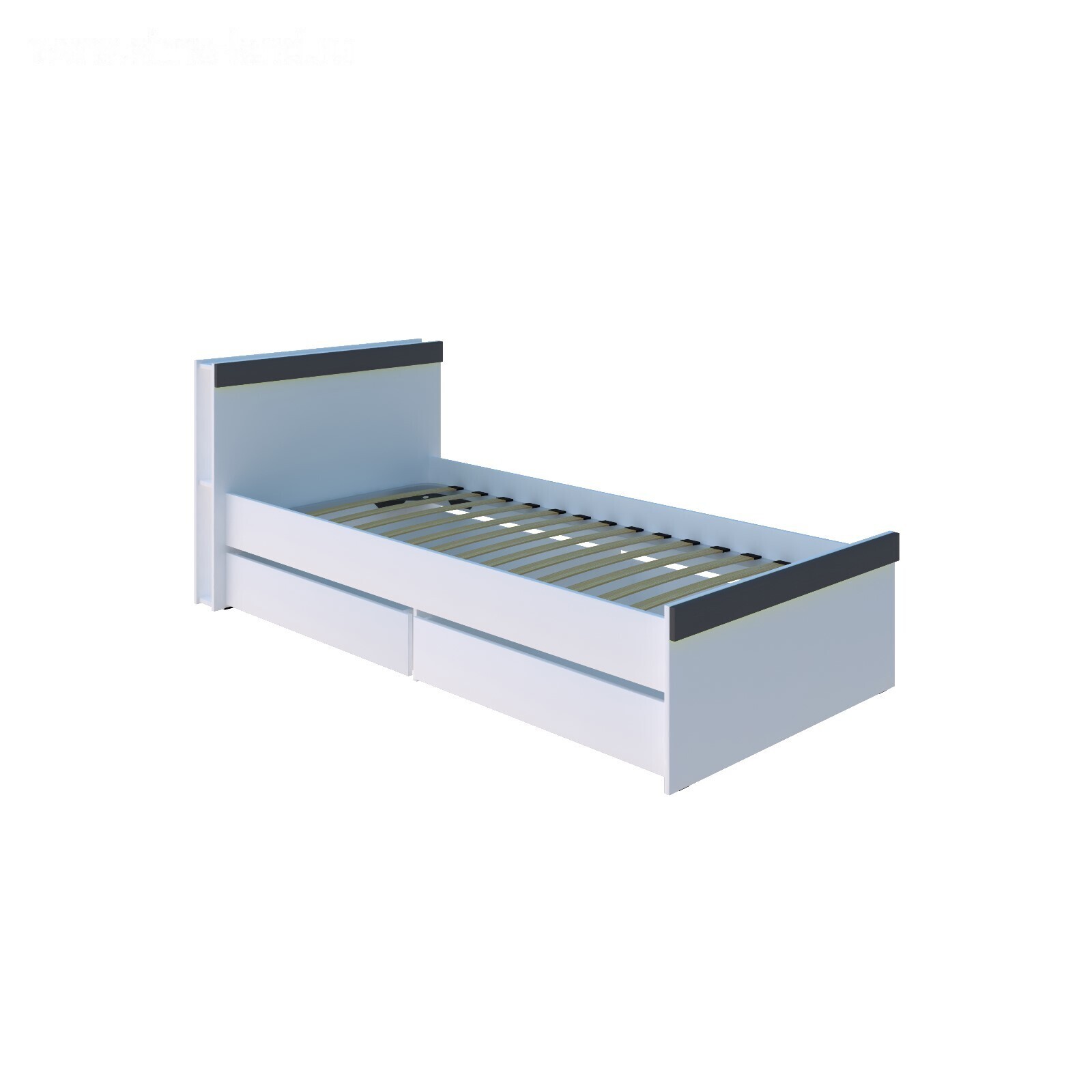 Кровать Юниор с 2мя ящиками 2052х1010х850 Белая аляска/Графит