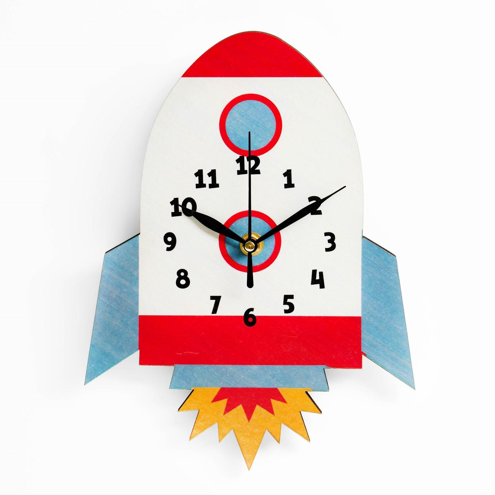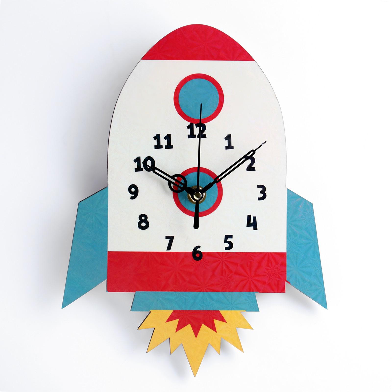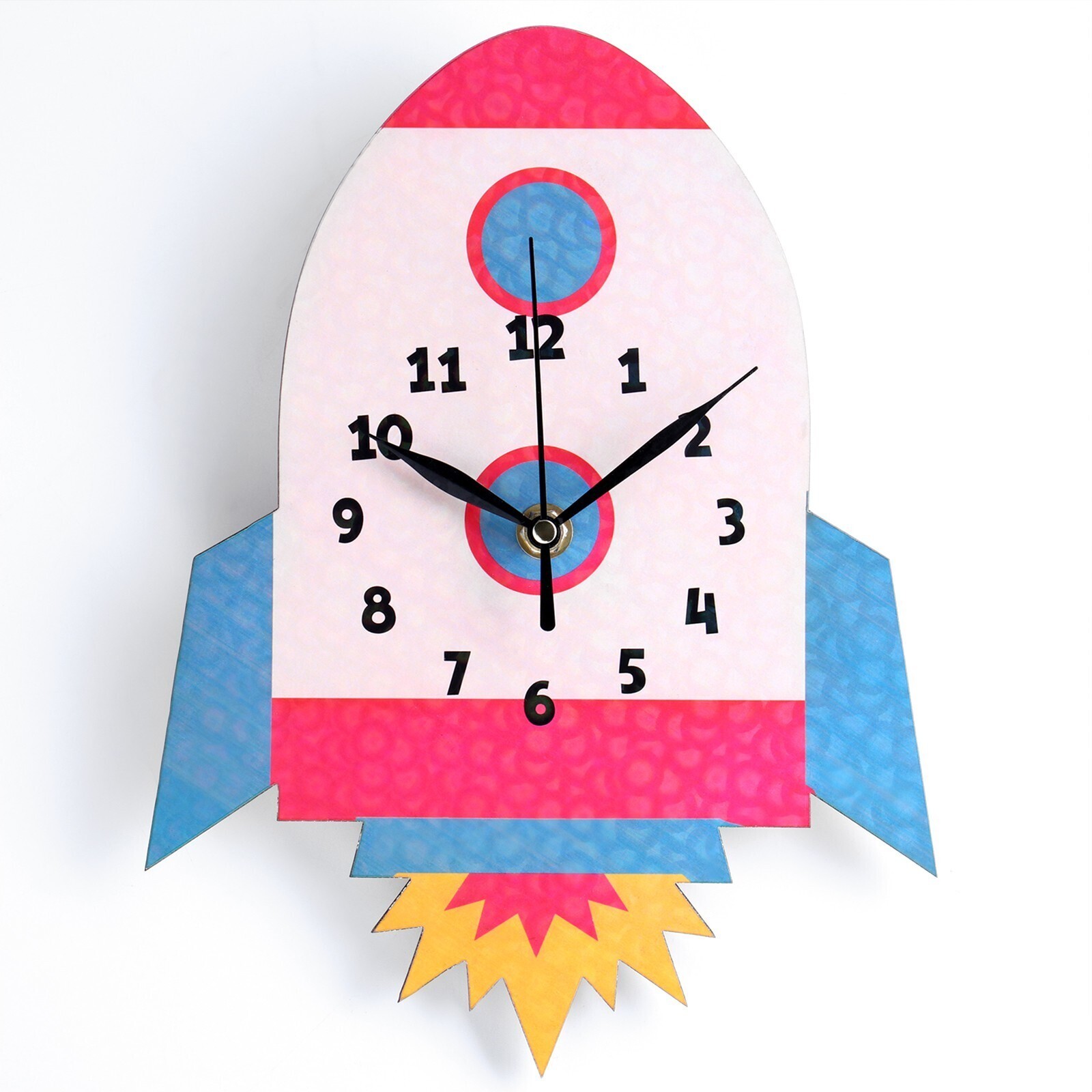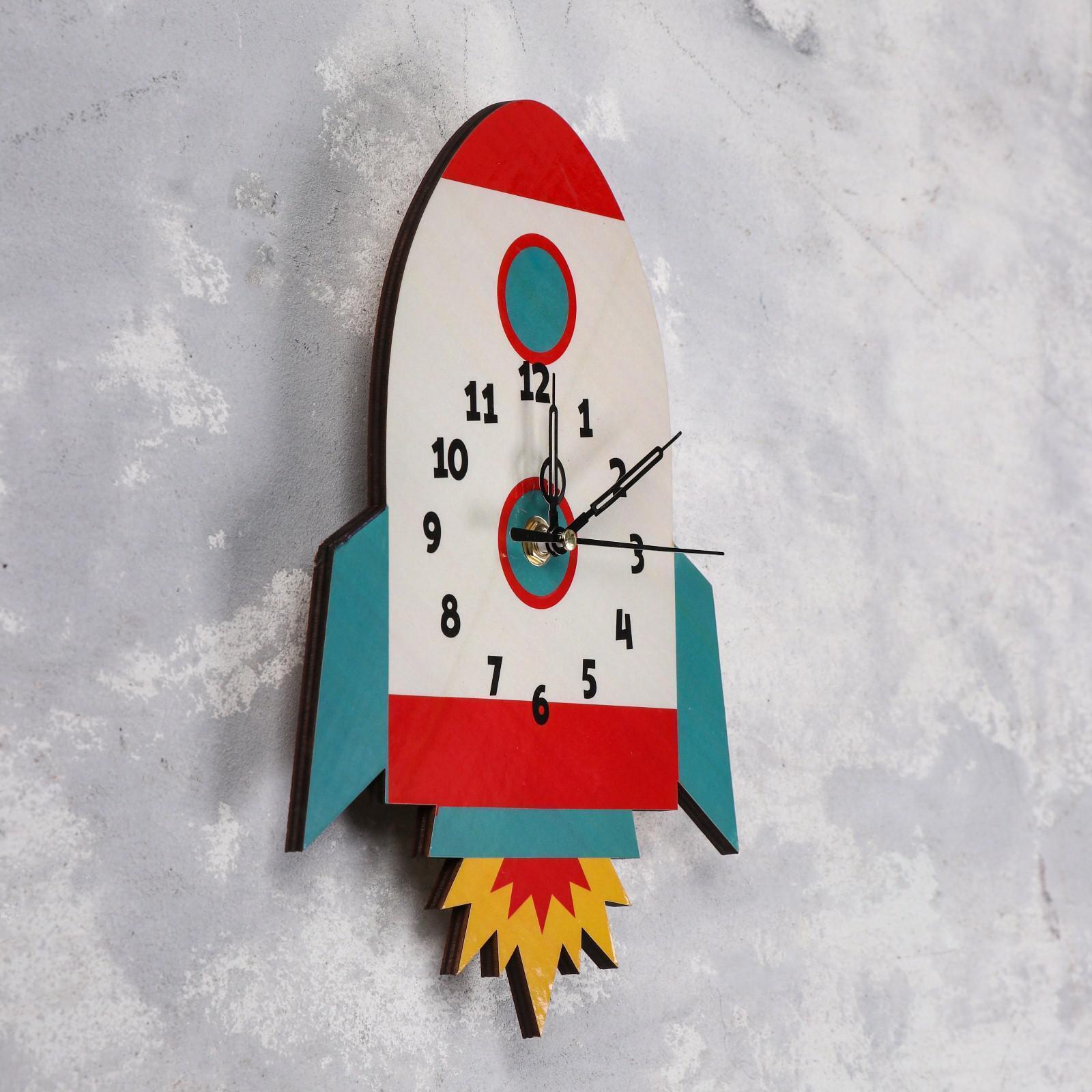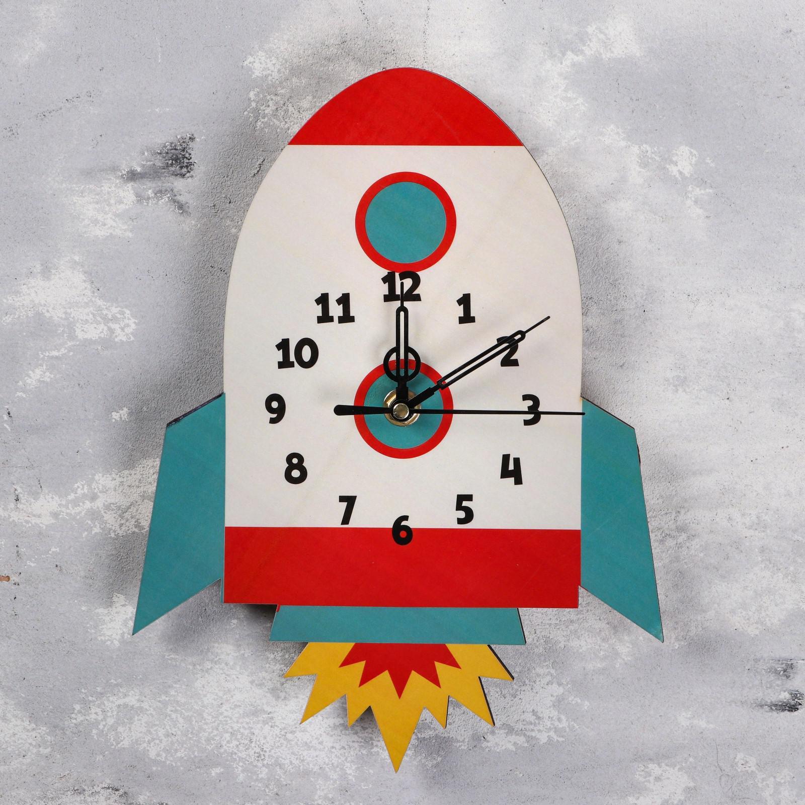 Часы настенные, серия: Детские, "Ракета", дискретный ход , микс