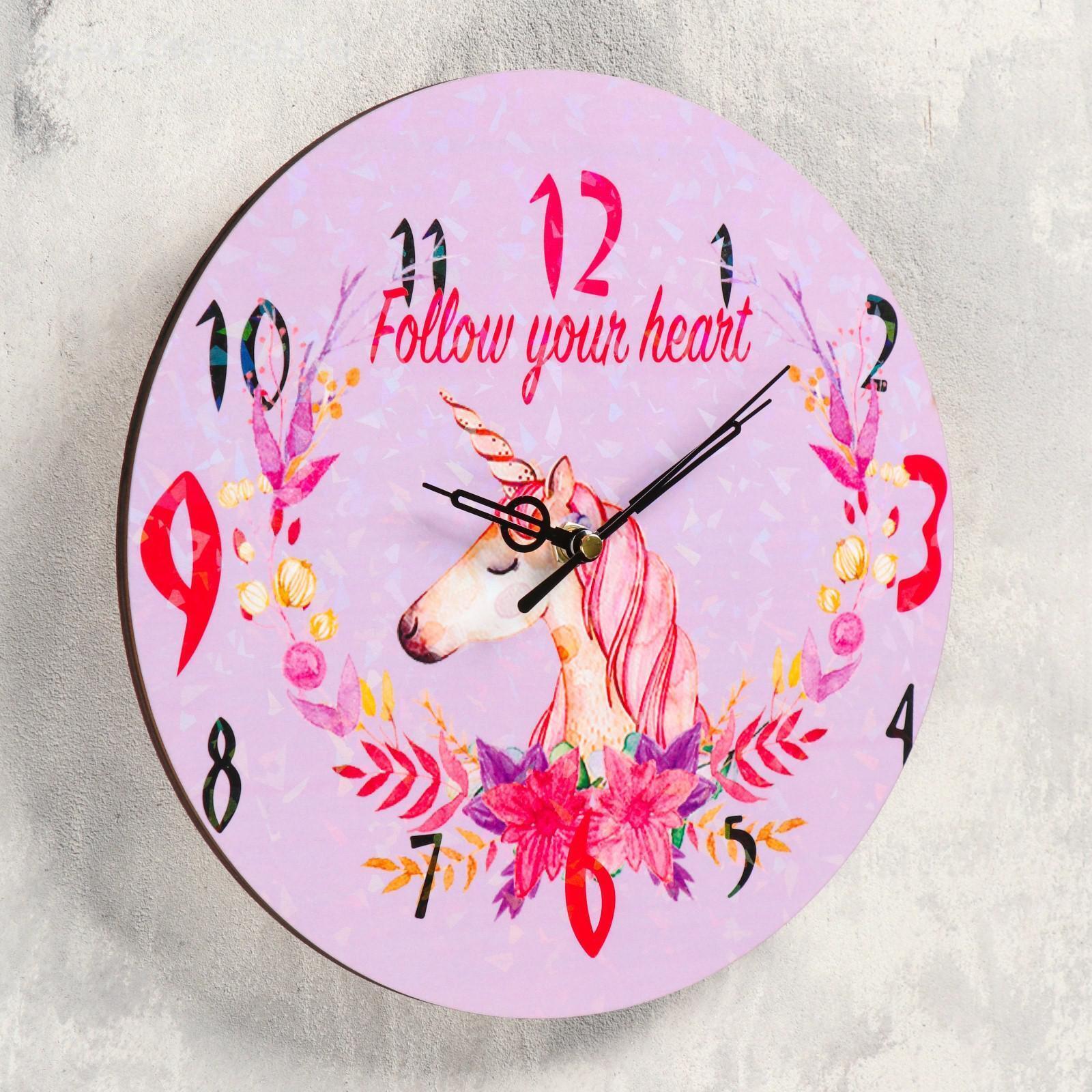 Часы настенные, серия: Детские, "Единорог", дискретный ход, d-23.5 см