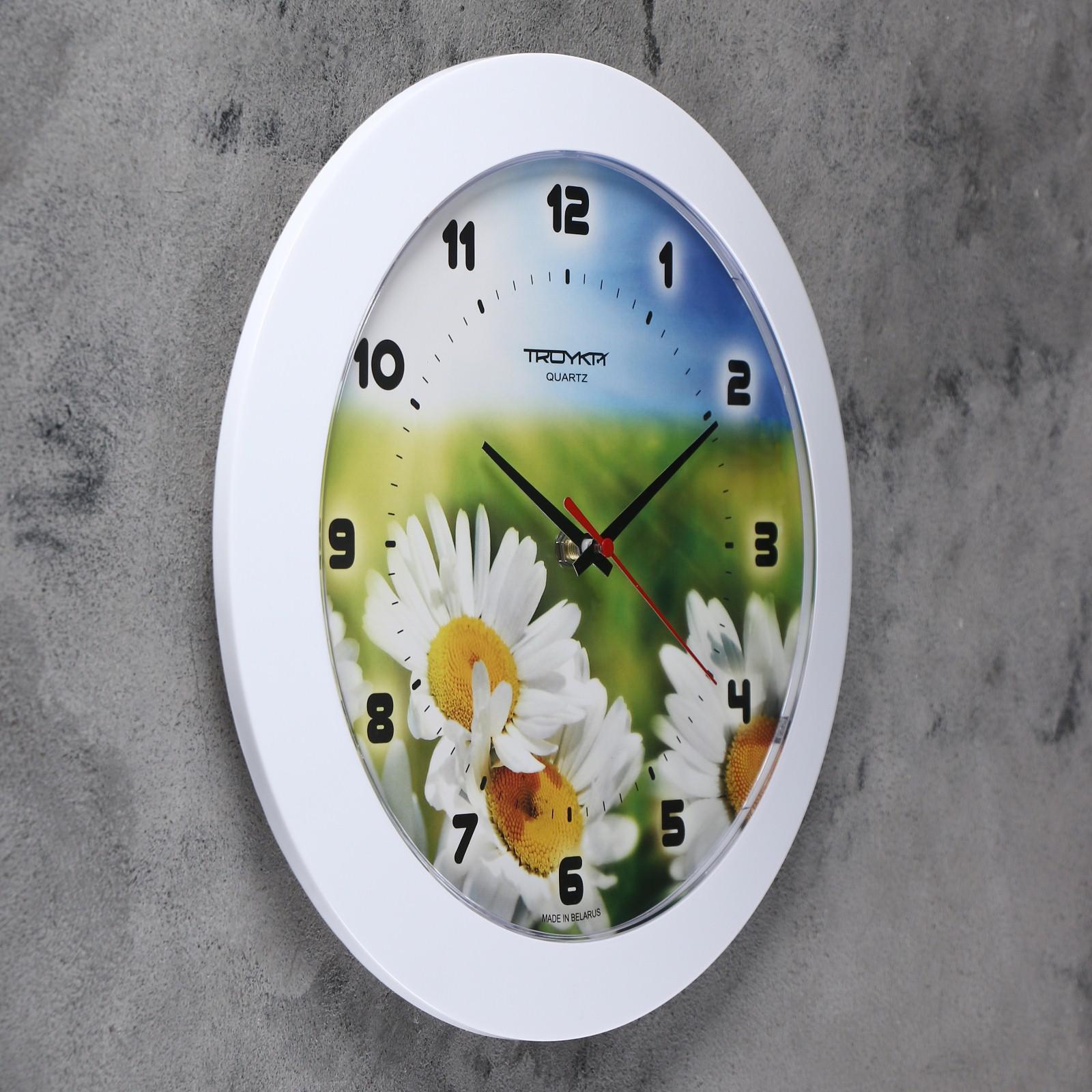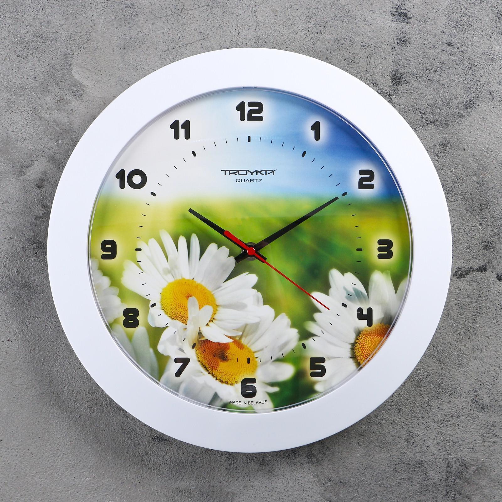 Часы настенные, серия: Цветы, "Ромашки", d-30 см, белый обод