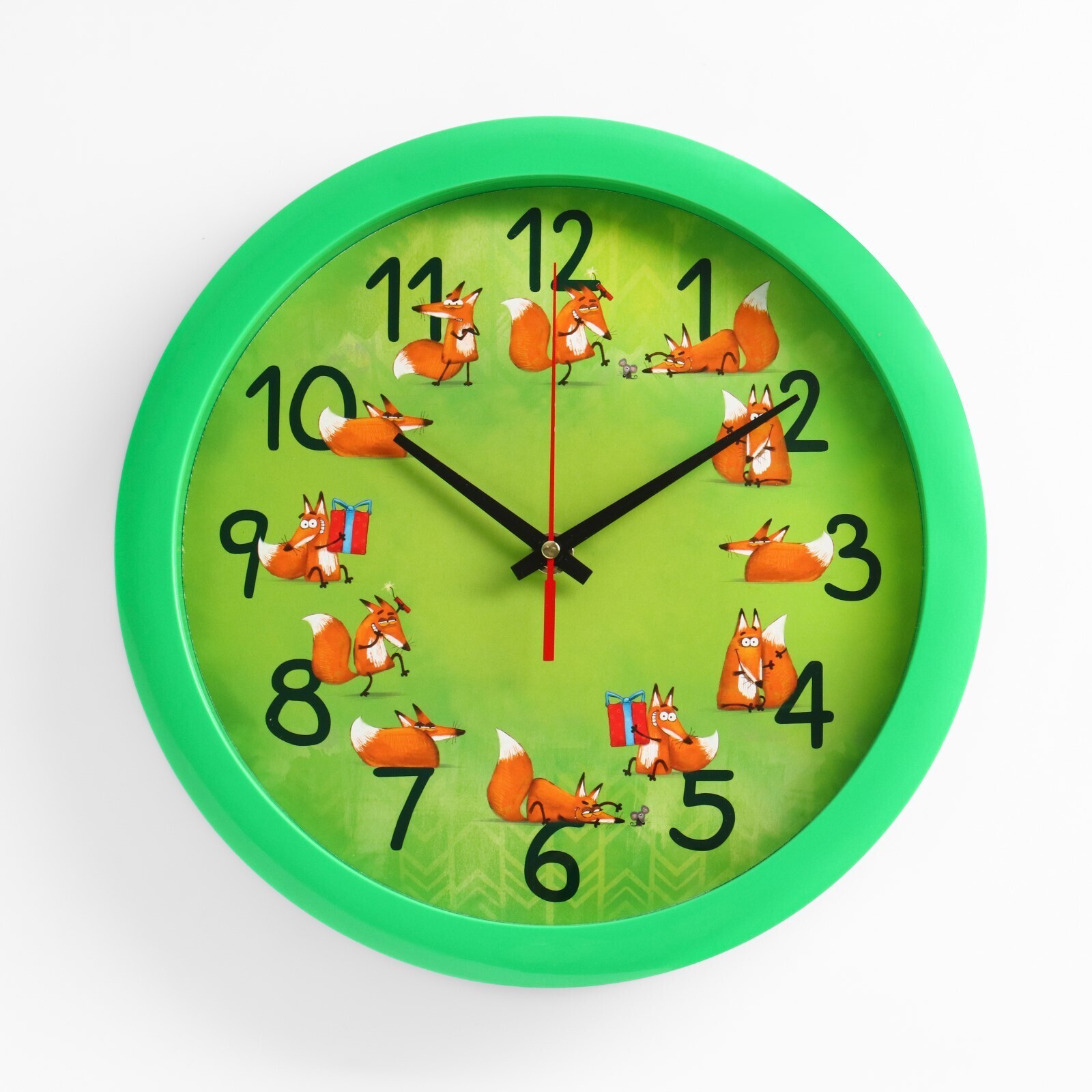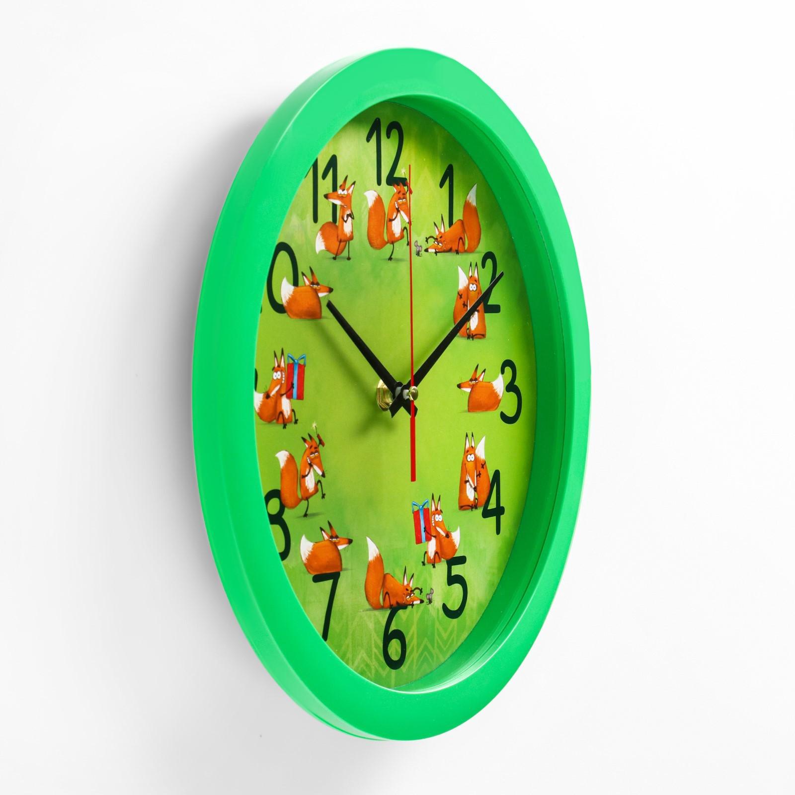 Часы настенные, серия: Детские , "Лисички", плавный ход, d-28 см