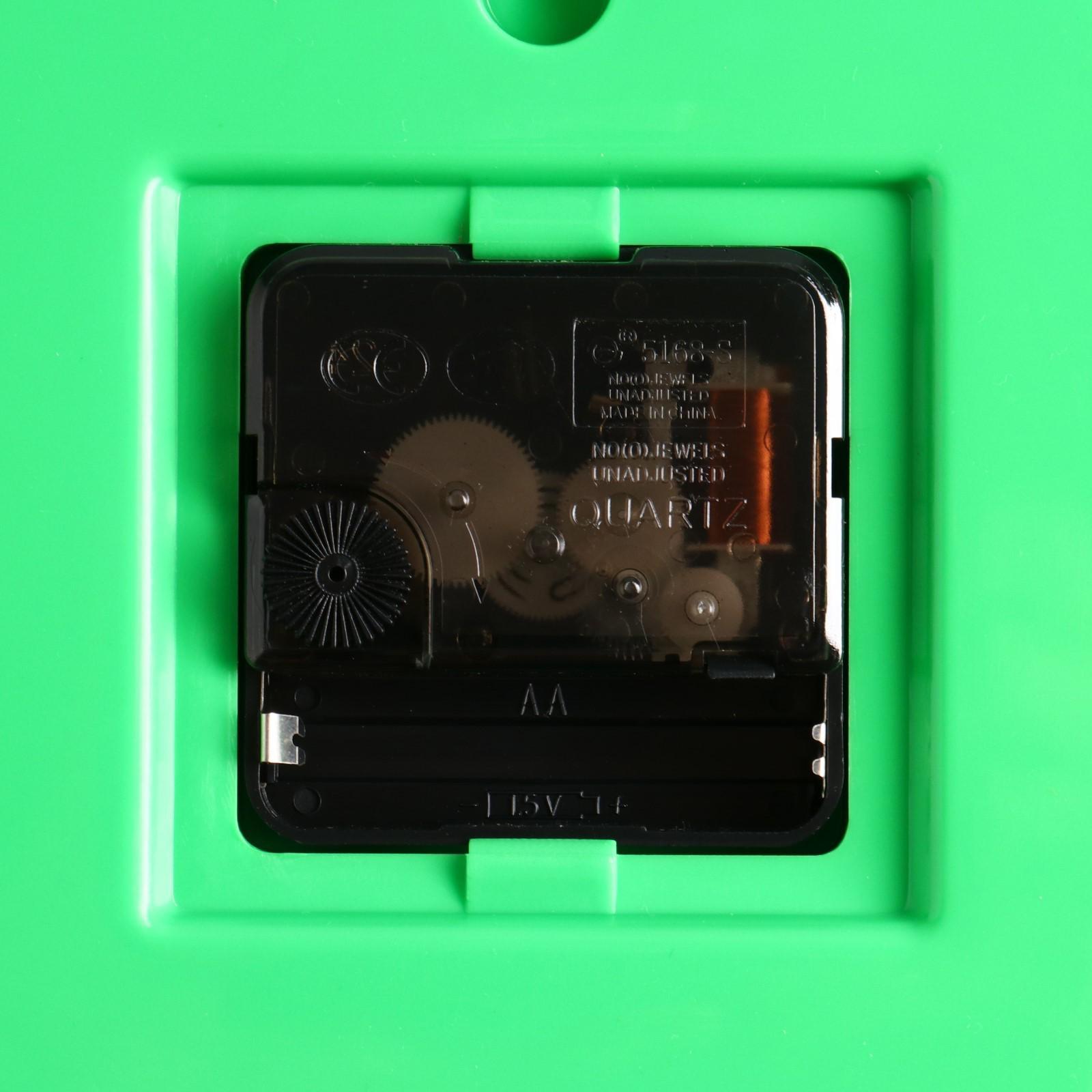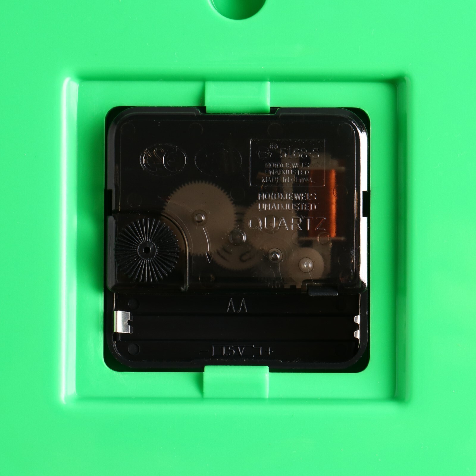 На задней стороне корпуса часов есть отверстие для подвешивания, работают от 1 батарейки типа АА (в комплект не входит).