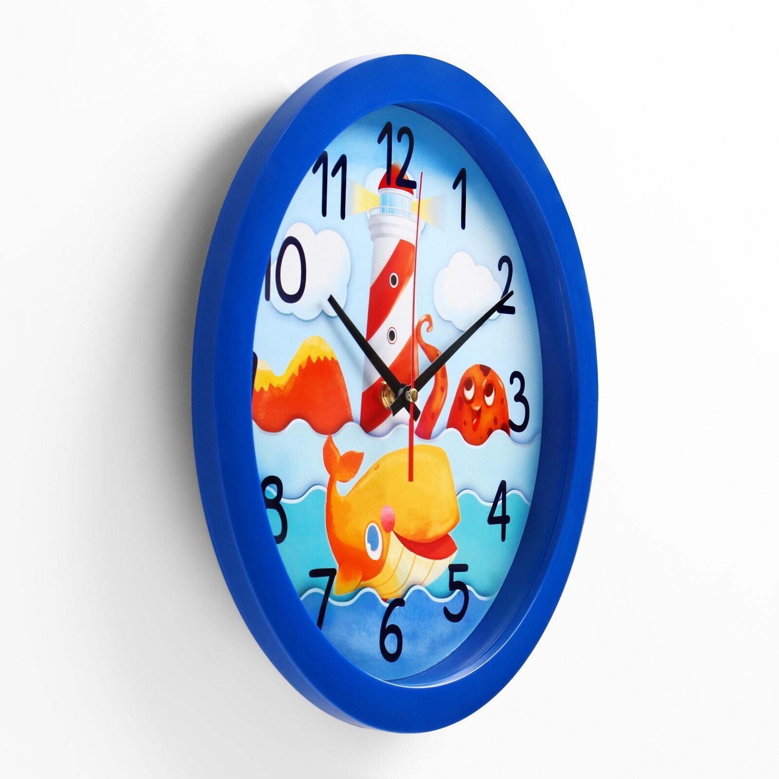 Часы настенные, серия: Детские, "Маяк и морские обитатели", плавный ход, d-28 см