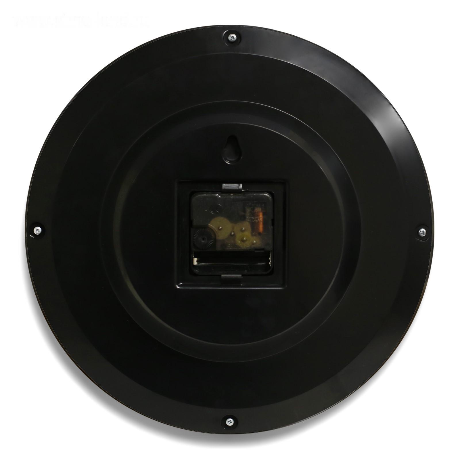 Диаметр часов 28 см, большие чёткие цифры, механизм - кварцевый с плавным ходом, корпус выполнен из экологически-чистого пластика, циферблат защищён прочным минеральным стеклом.