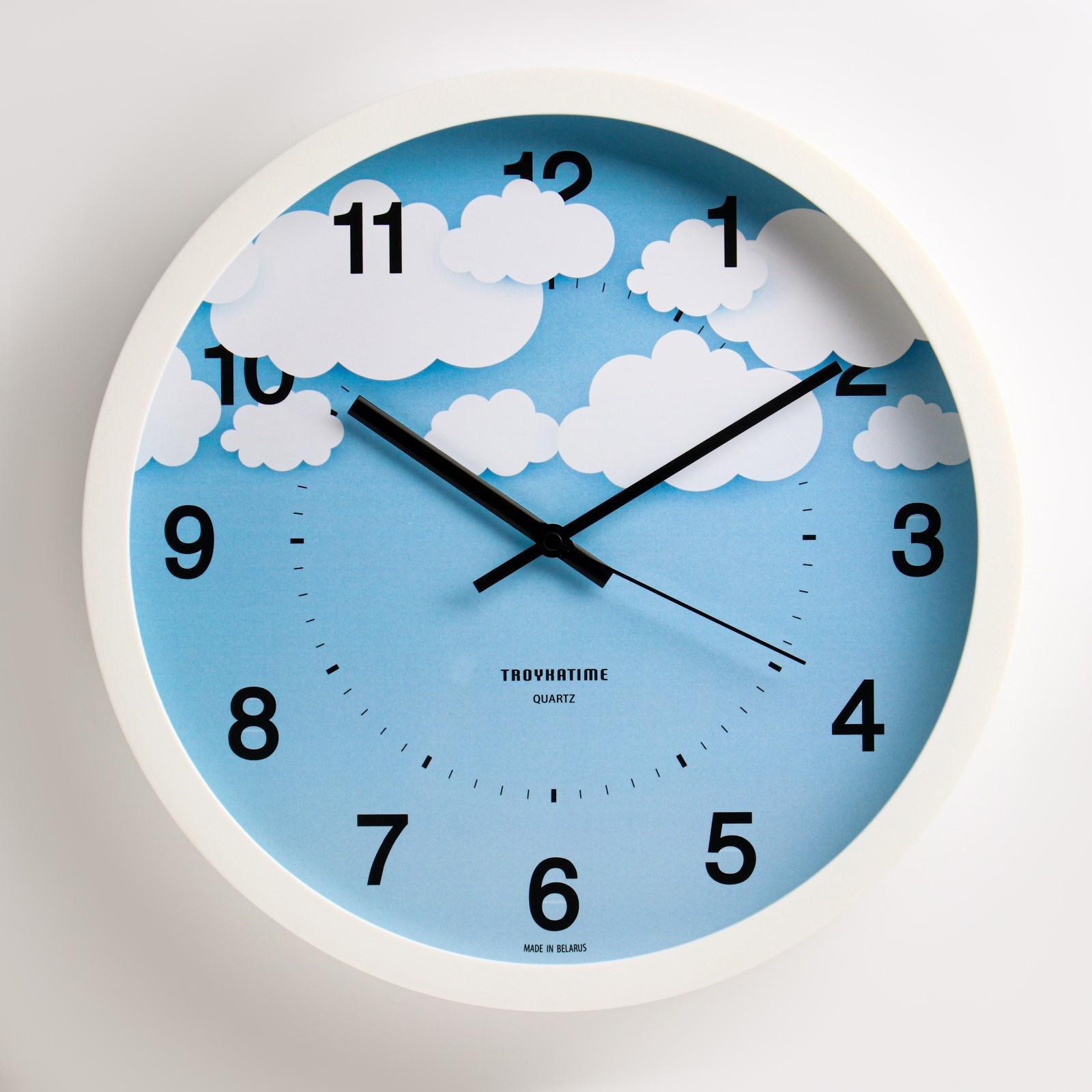 Часы настенные, серия: Детские, "Облака", плавный ход, d-30.5 см