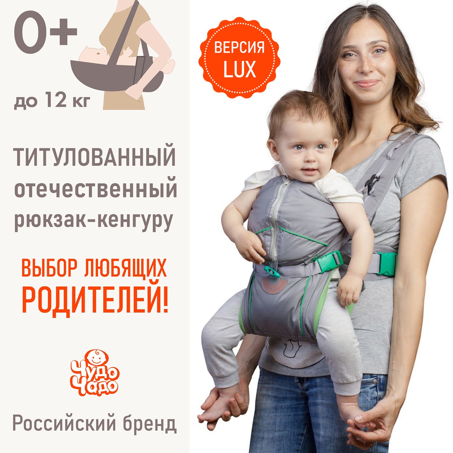 Рюкзак-кенгуру Чудо-чадо «BabyActive Lux» серый «Изумруд» BLP06-001