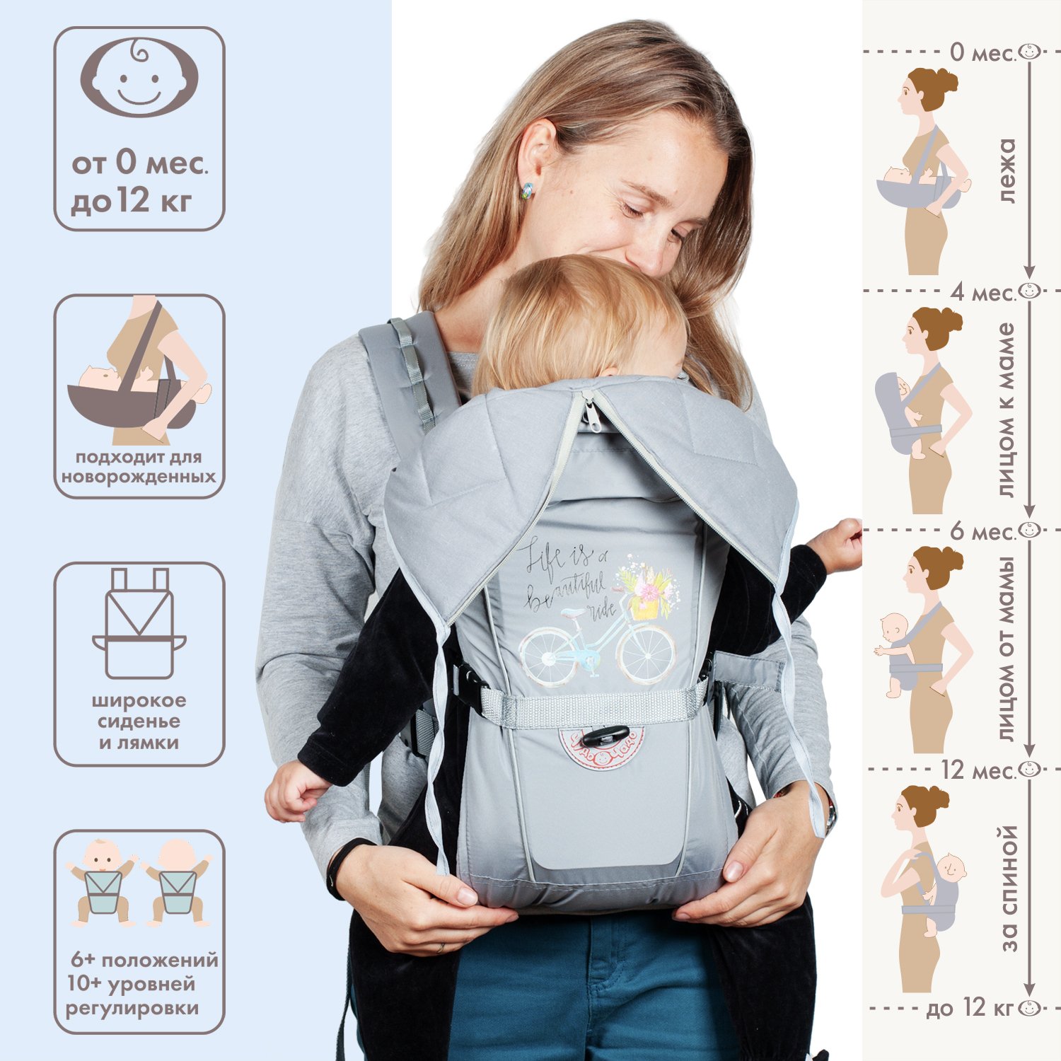 Рюкзак-кенгуру Чудо-чадо «BabyActive Grace» от 0 мес серый/велосипед BAG01-001