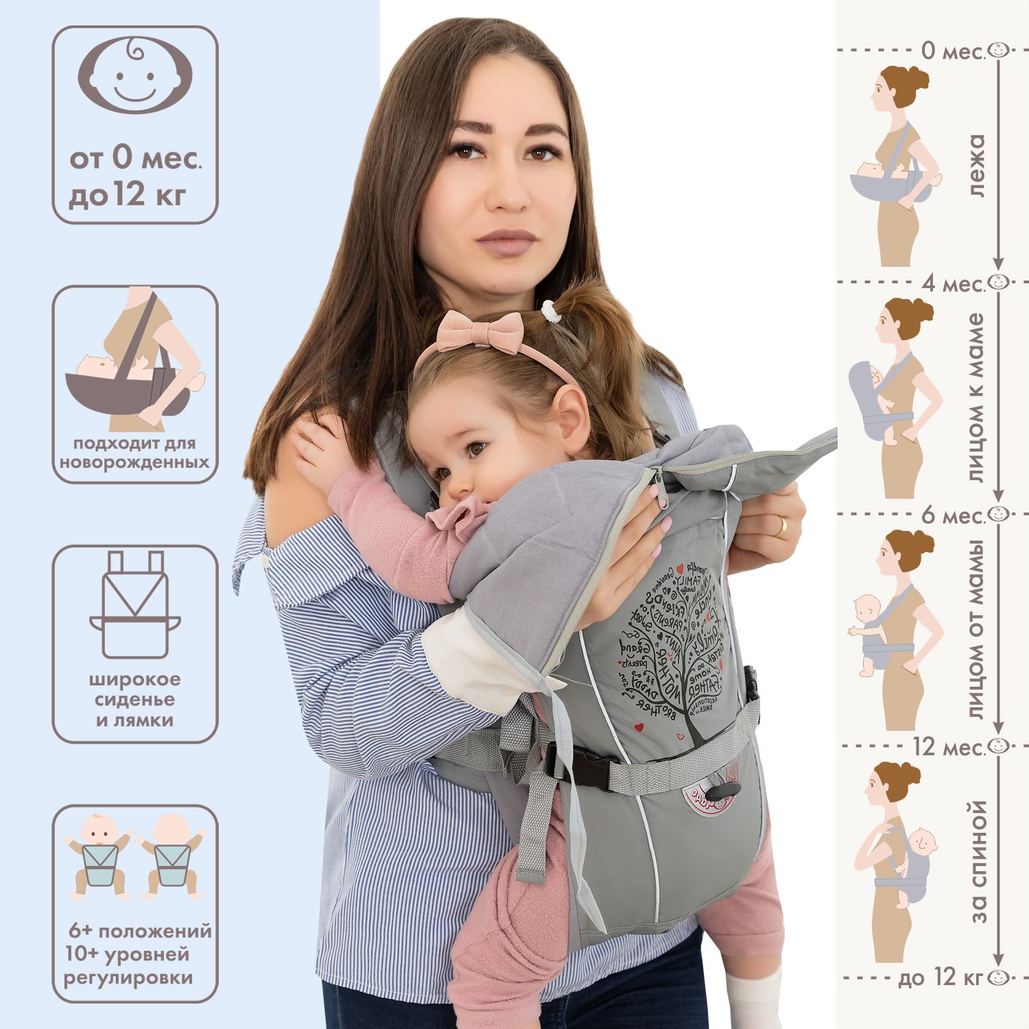 Рюкзак-кенгуру Чудо-чадо «BabyActive Grace» с 0 мес серый/дерево BAG01-002