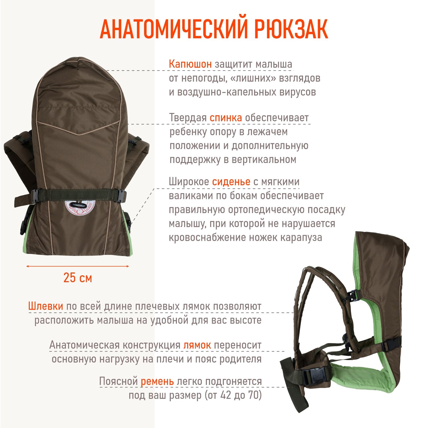 Рюкзак-кенгуру Чудо-чадо переноска для ребенка с 0 мес «‎BabyActive Simple» хаки BAS15-001