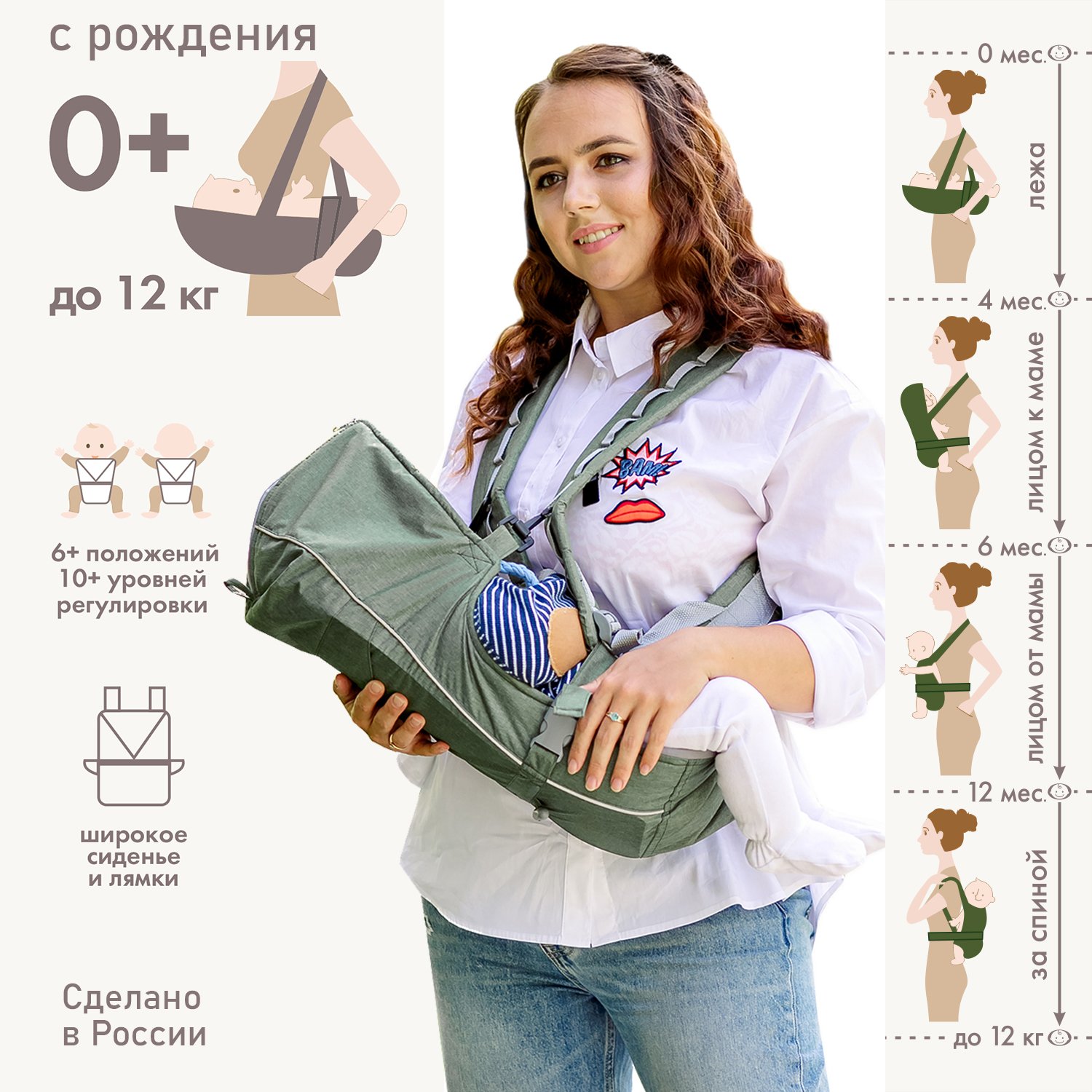 Рюкзак-кенгуру Чудо-чадо переноска с 0 мес «BabyActive Vikont» оливковый BAV01-005
