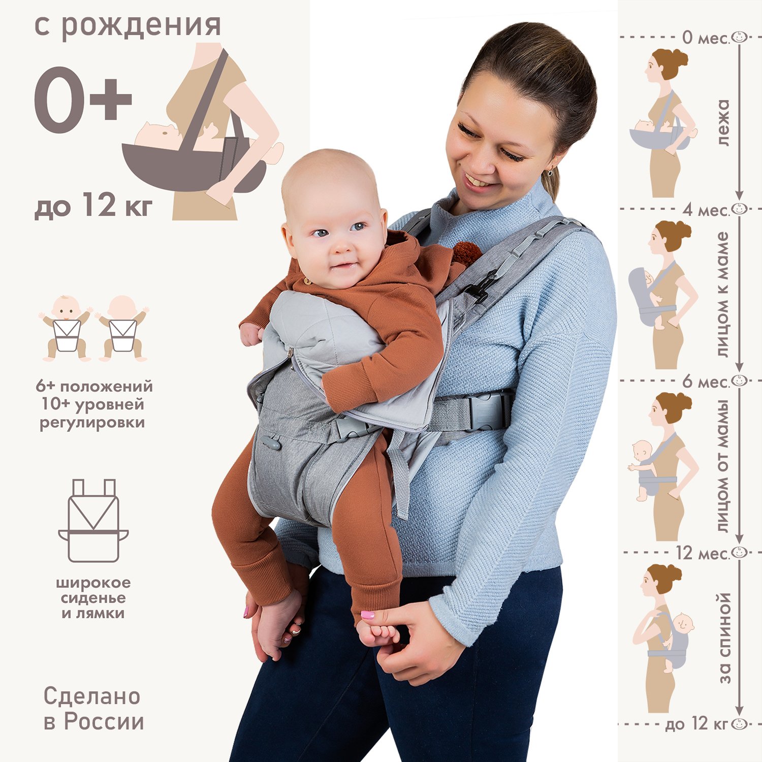 Рюкзак-кенгуру Чудо-чадо переноска с 0 мес «BabyActive Vikont» серебристый BAV01-004