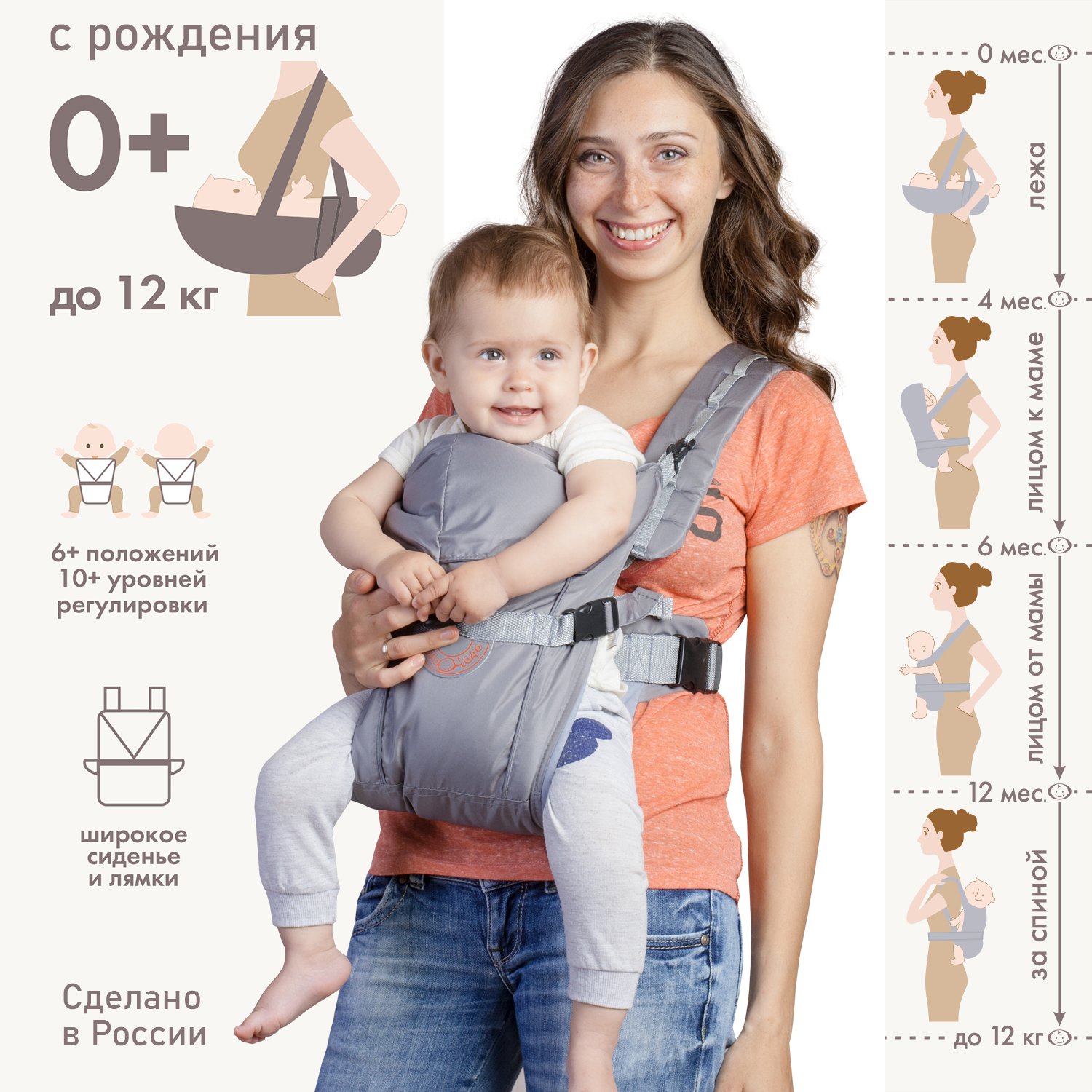 Рюкзак-кенгуру Чудо-чадо переноска для ребенка с 0 мес «‎BabyActive Simple» серый BAS06-002