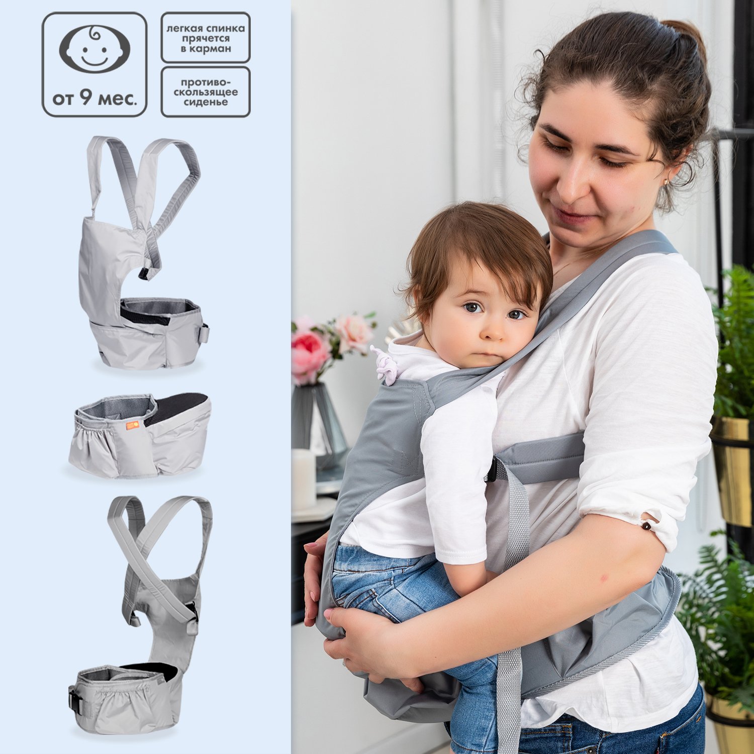 Хипсит-рюкзак Чудо-чадо со спинкой «‎Непоседа» серый ПНР01-004