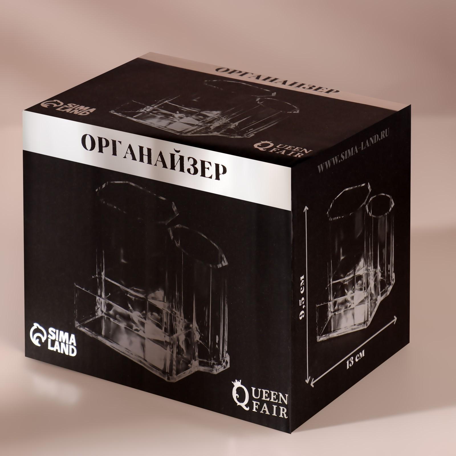 Органайзер для хранения маникюрных/косметических принадлежностей, 3 секции, 13 × 11 × 9,5 см, цвет прозрачный