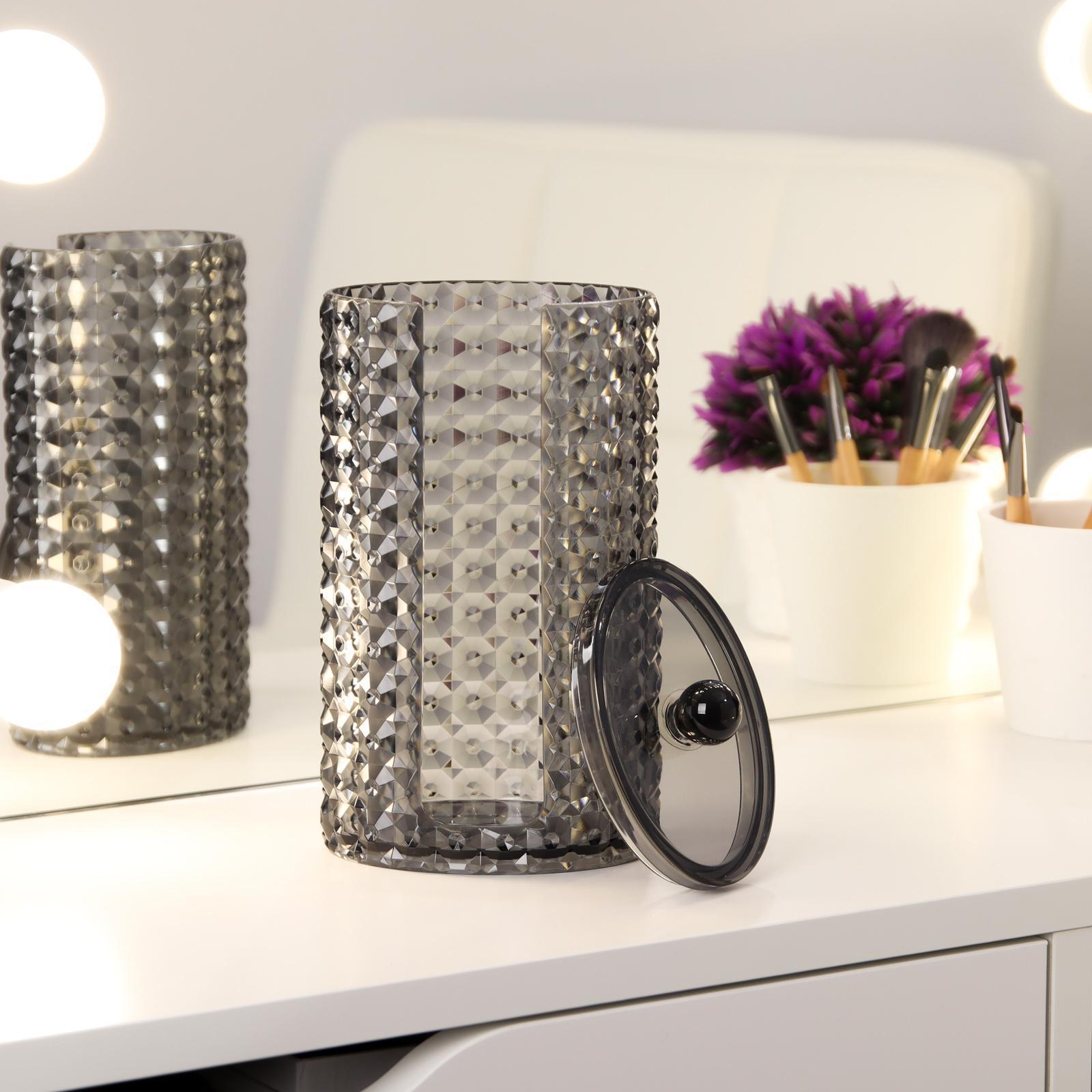 Стильный органайзер для ватных дисков поможет навести порядок среди гигиенических принадлежностей. Изделие отличается прозрачным корпусом, оригинальной крышкой и удобной боковой прорезью для извлечения дисков. Аксессуар способен вписаться в любой интерьер, сэкономив при этом место в шкафчиках или на вашей тумбочке.