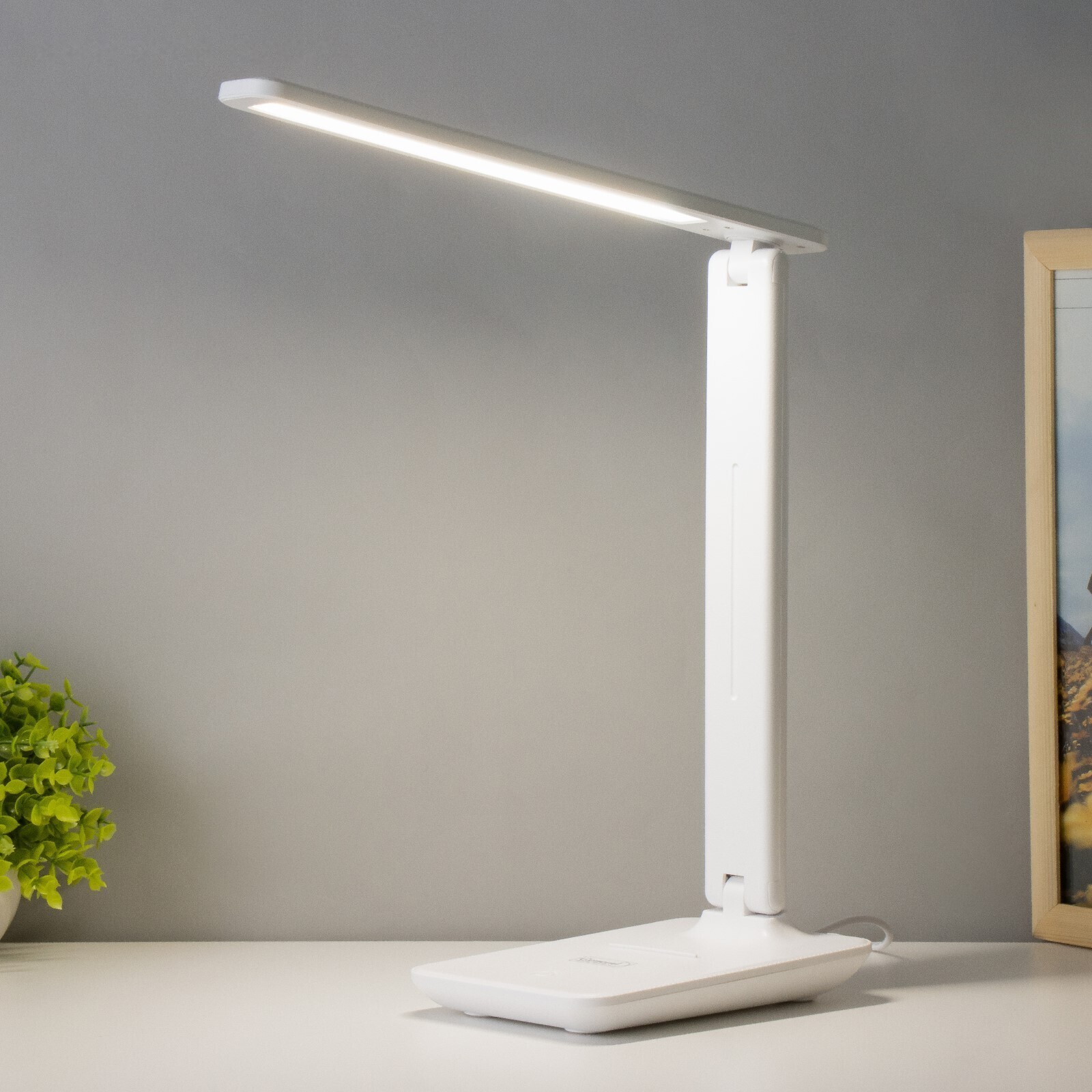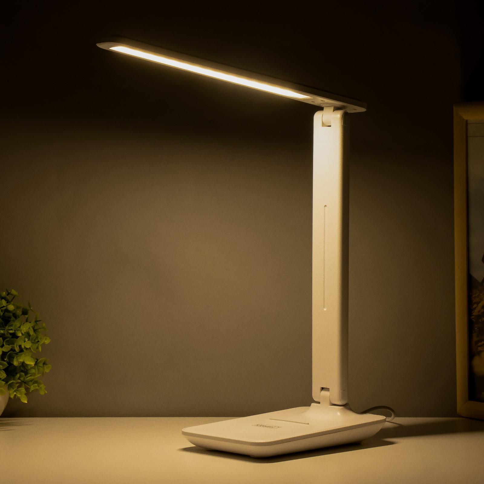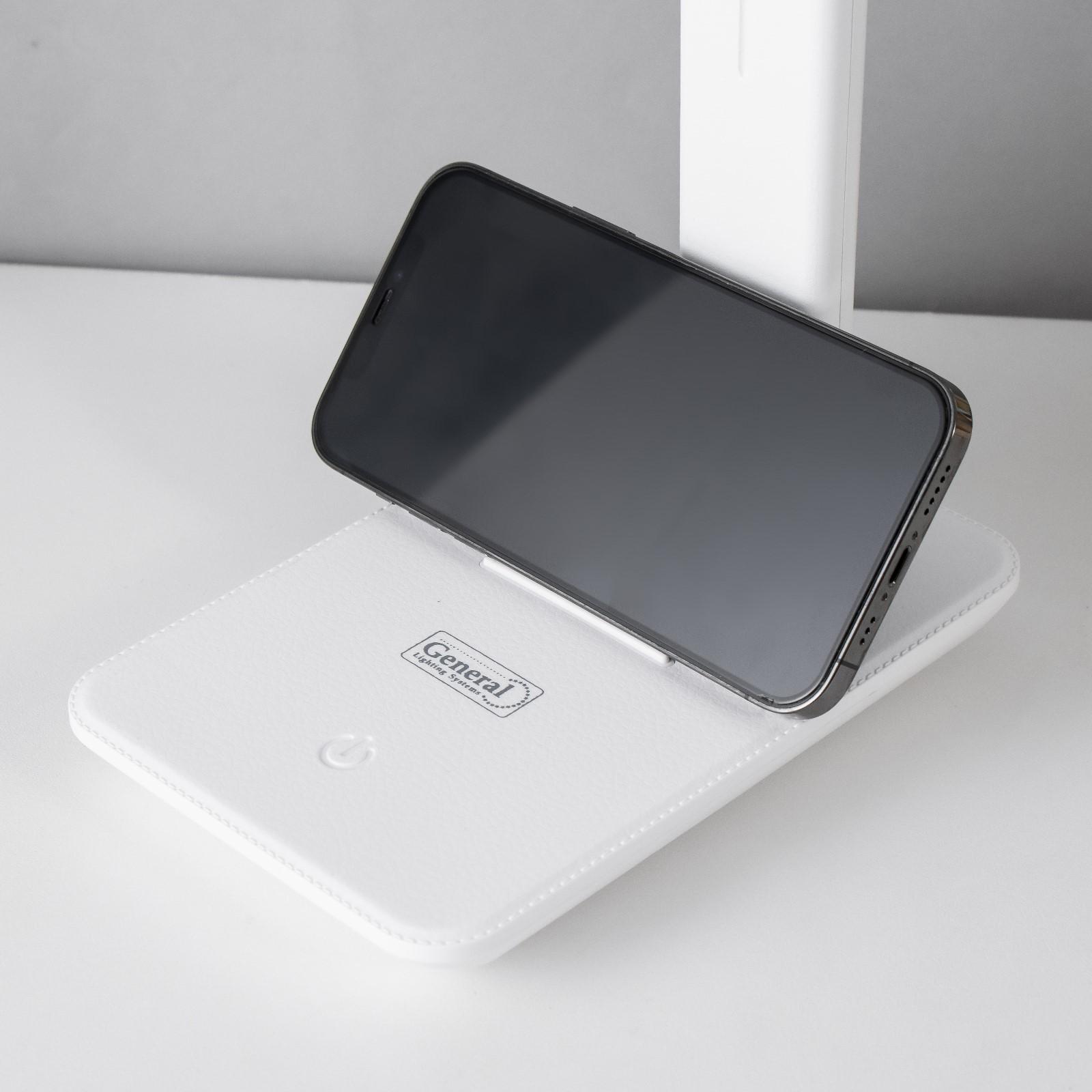Настольная лампа 8Вт 450лм 3000-6000К к-1,2м подставка для телефона белый