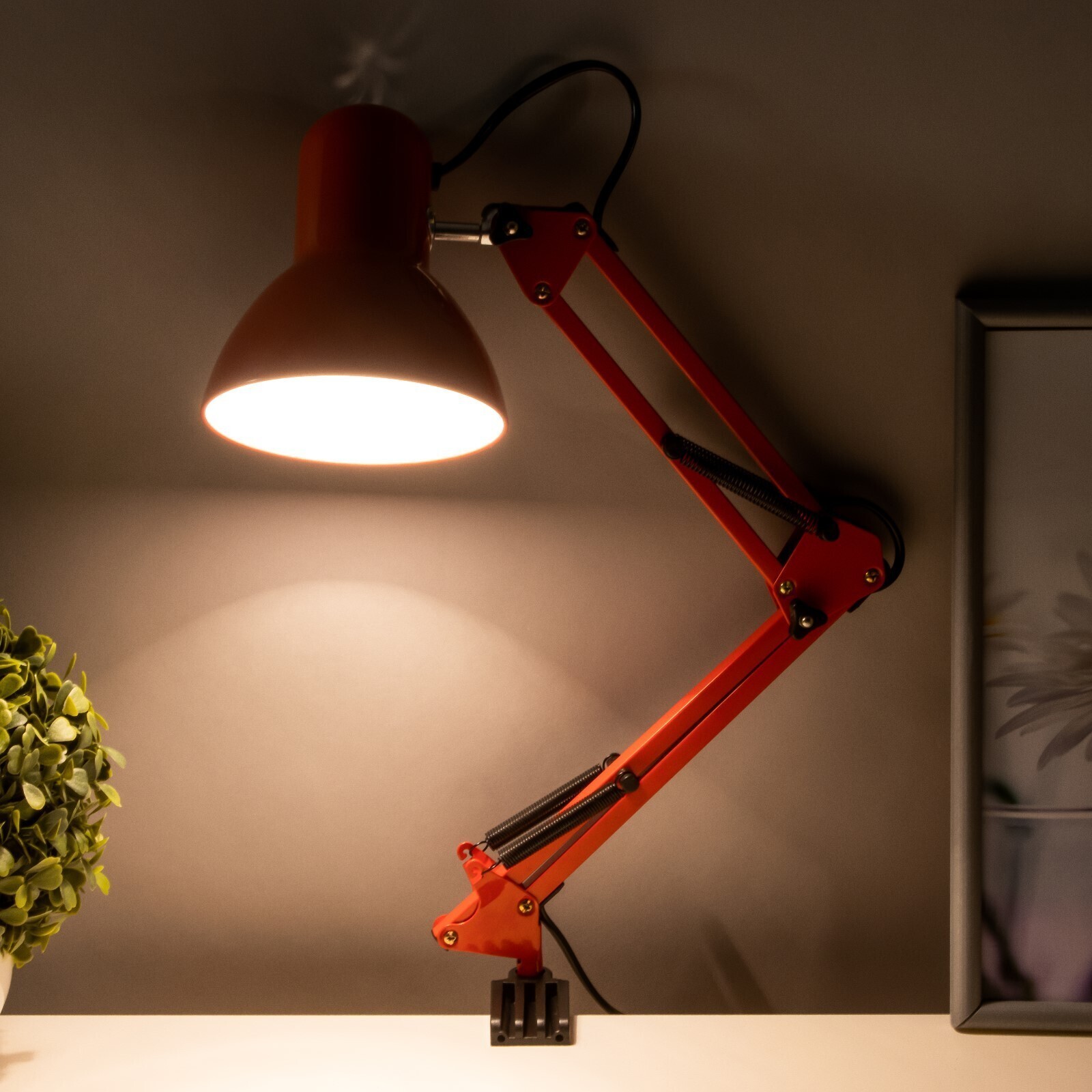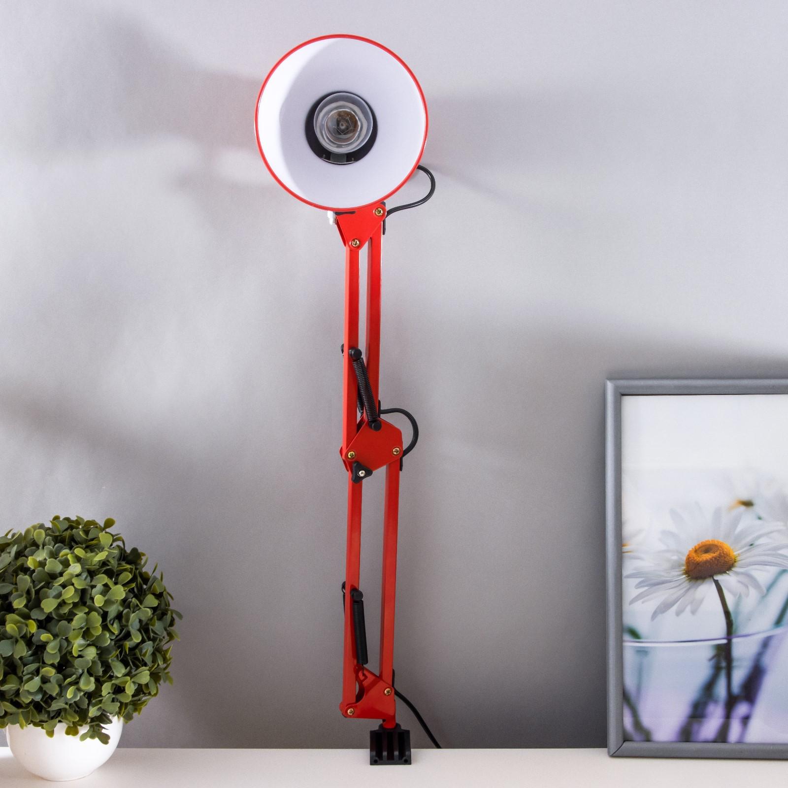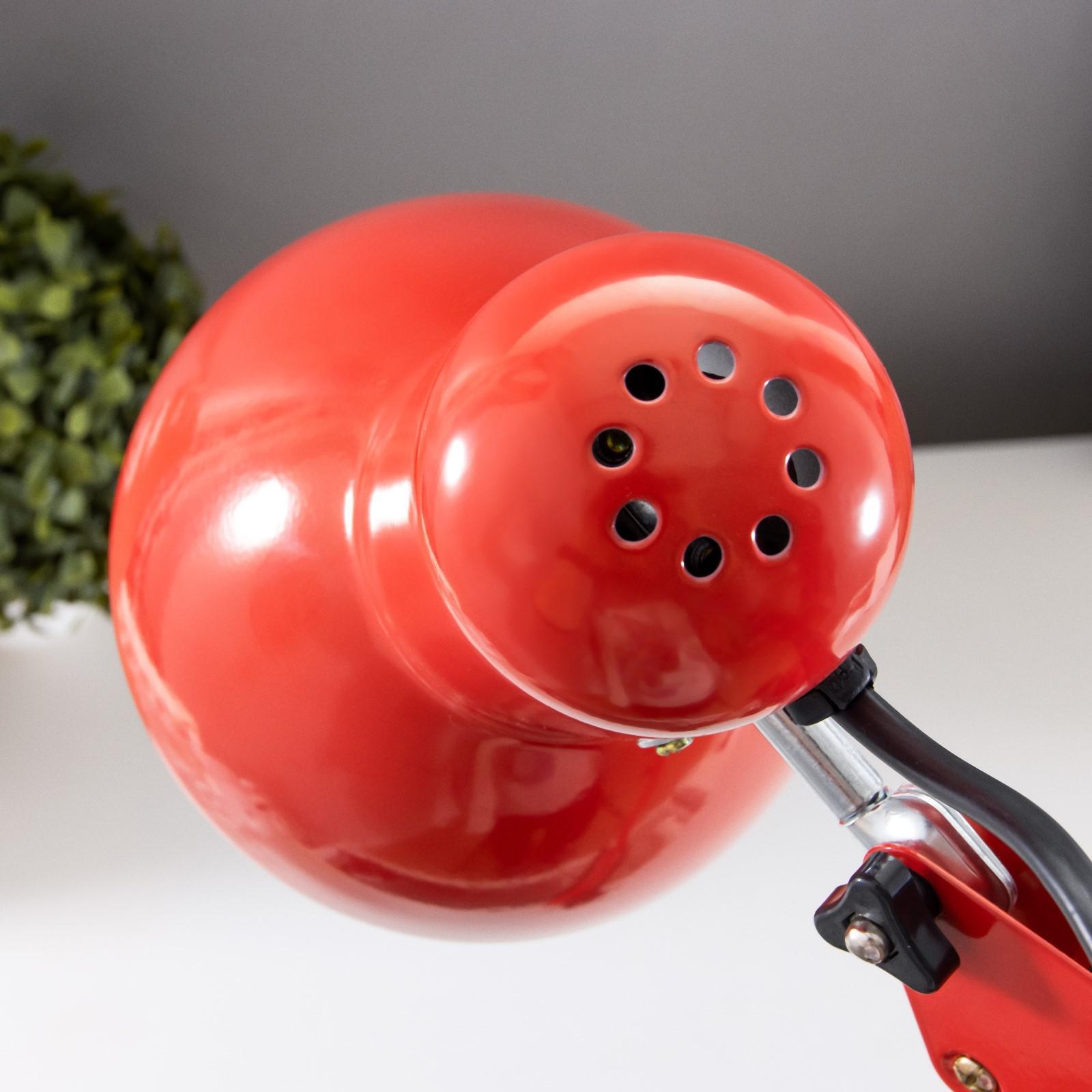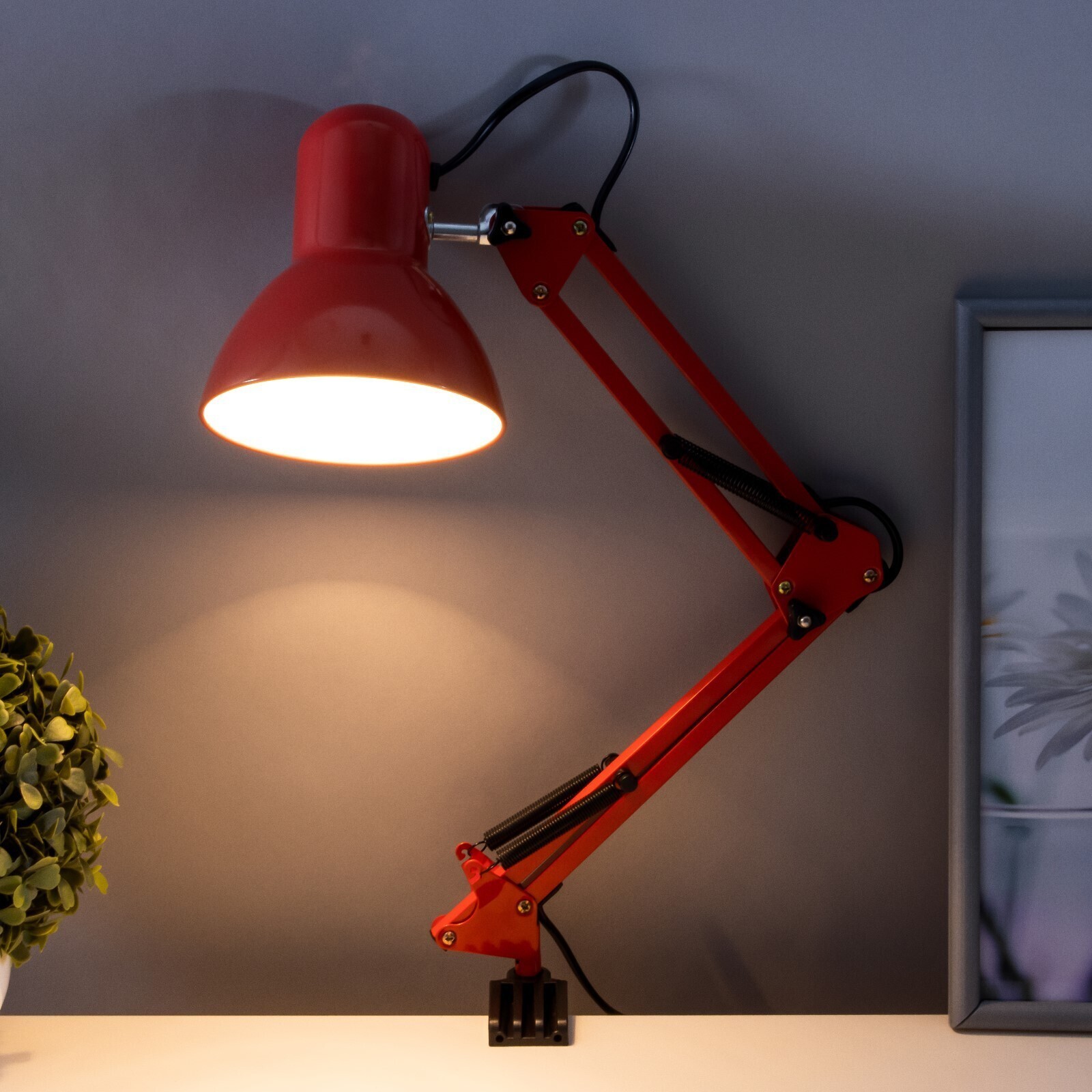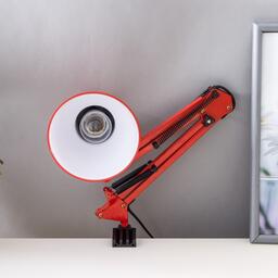 Лампа настольная Е27, h=55 см, шарнирная, на зажиме (220В) красная