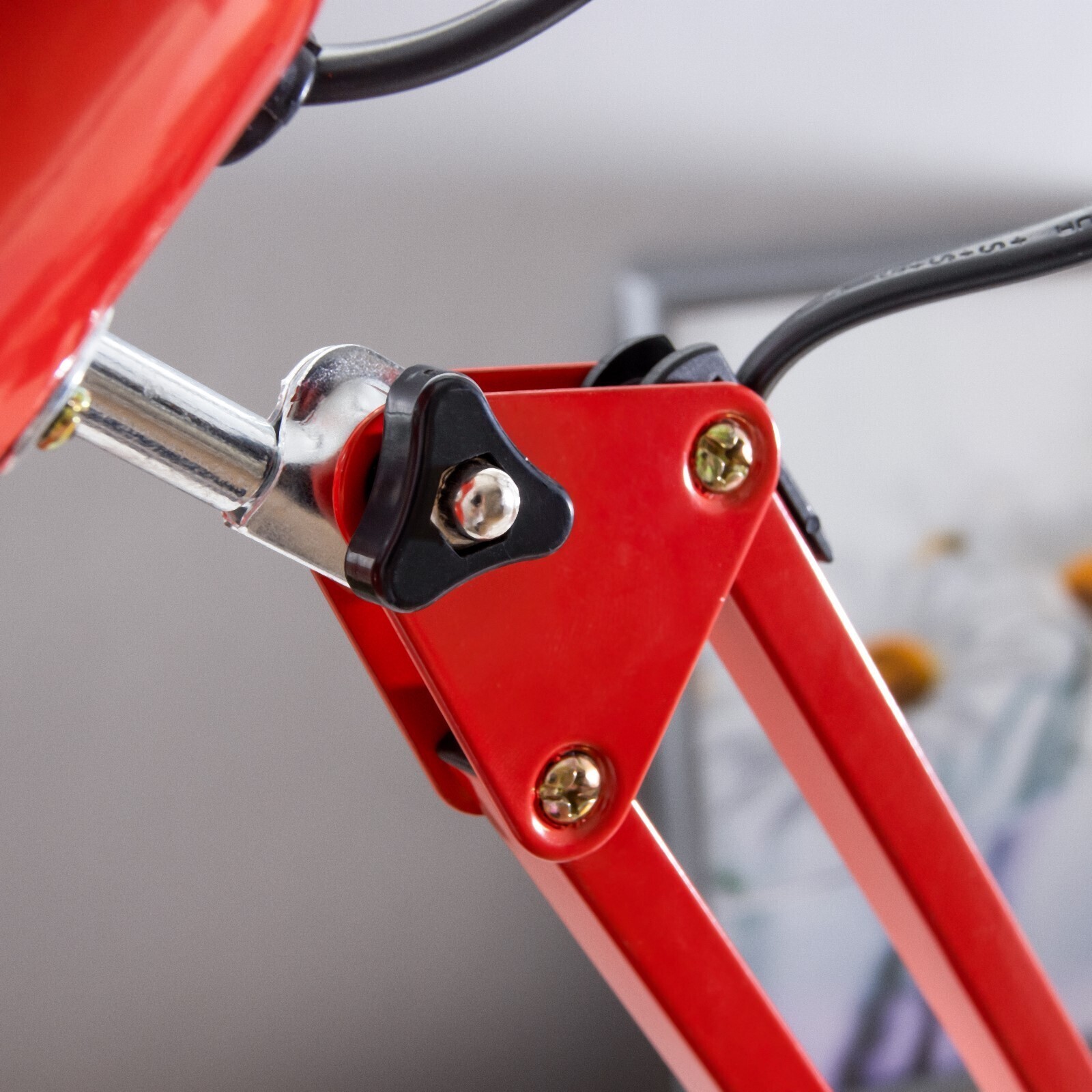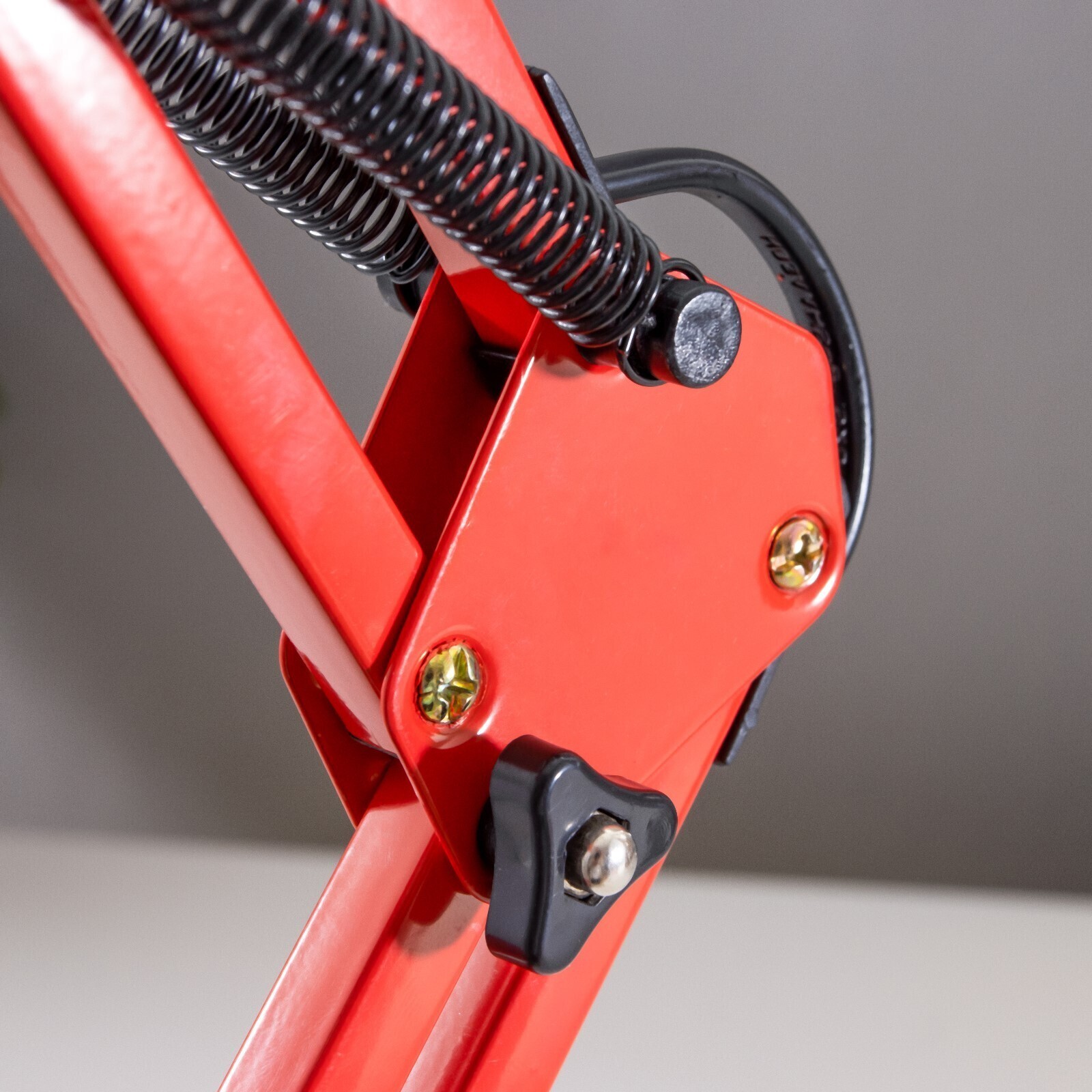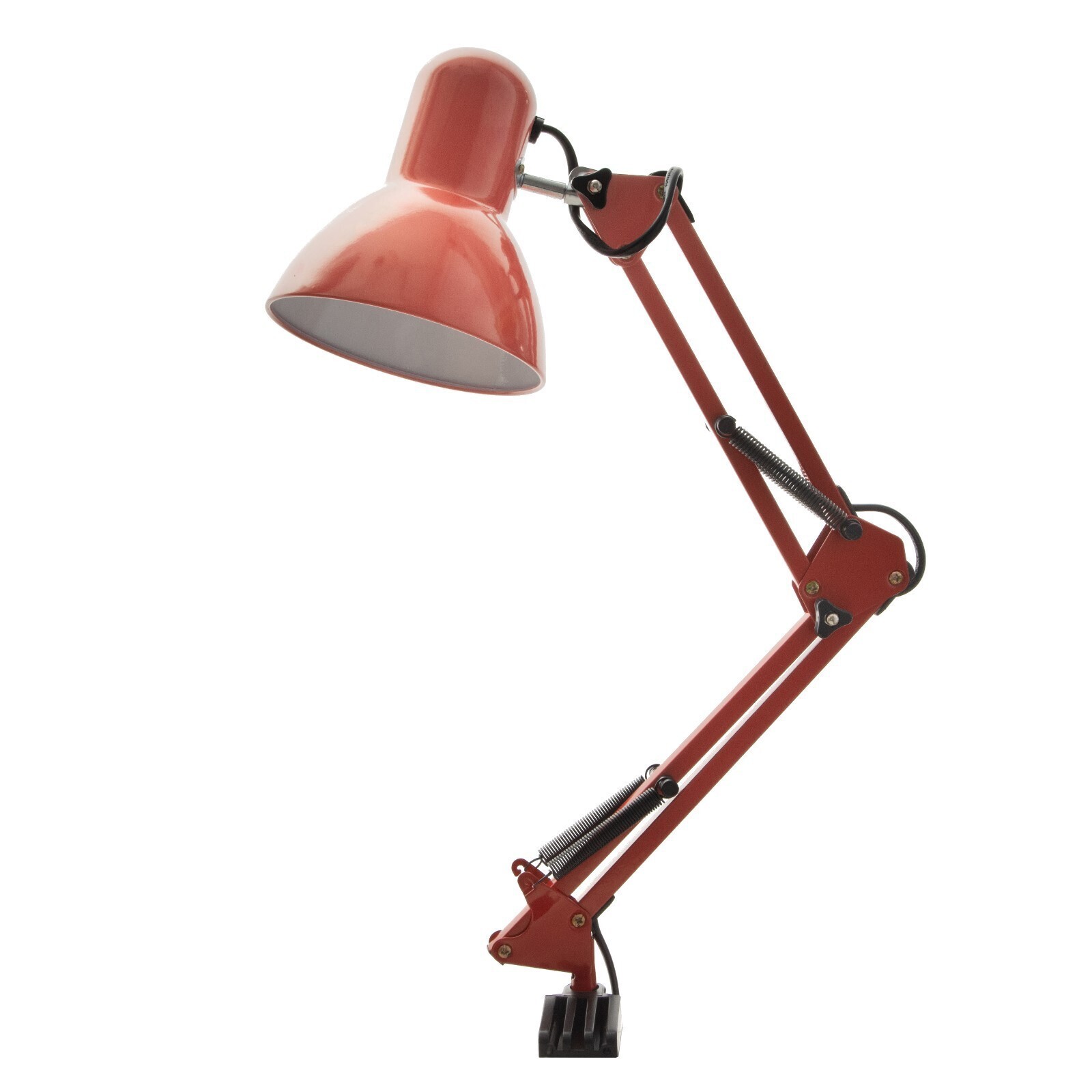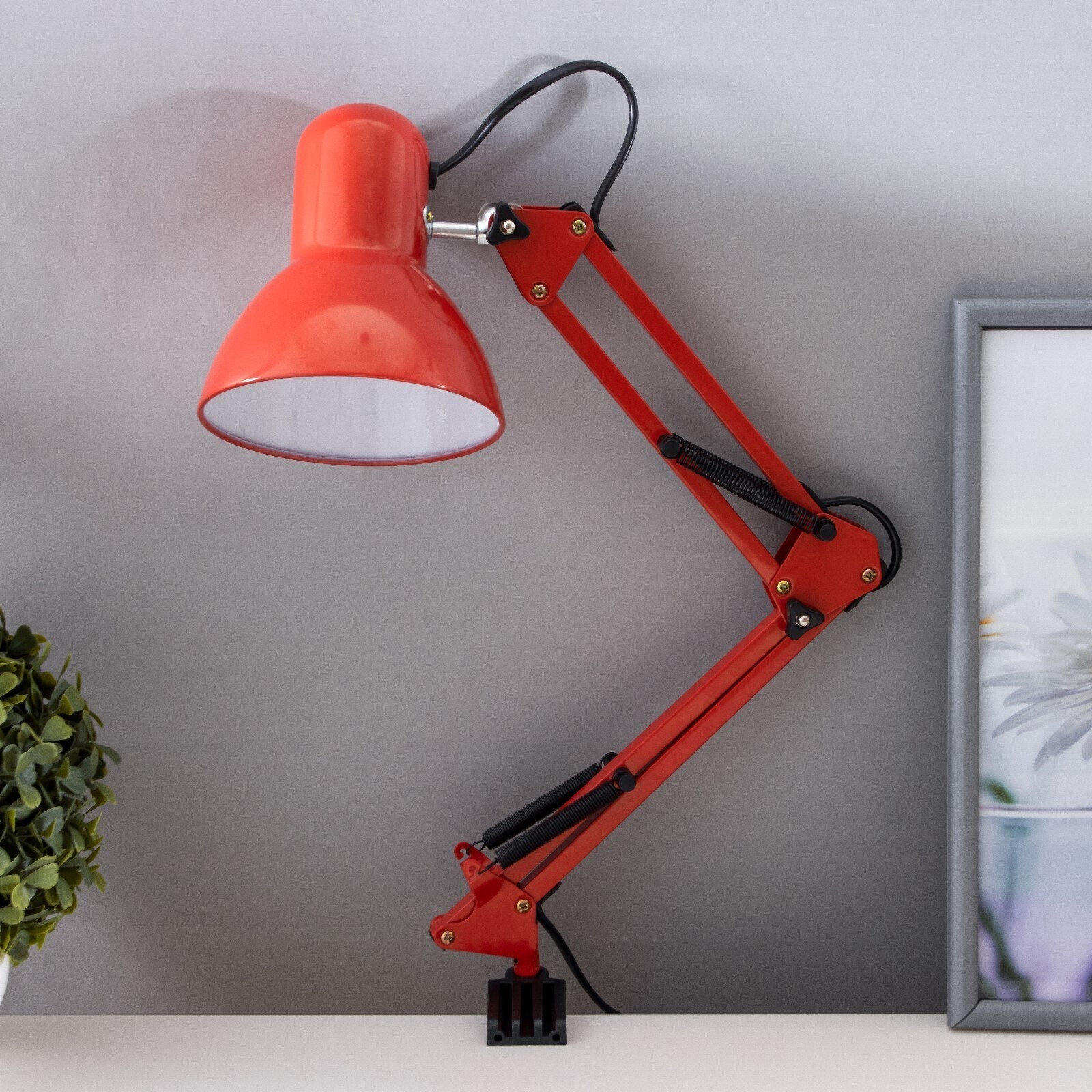 Лампа настольная Е27, h=55 см, шарнирная, на зажиме (220В) красная
