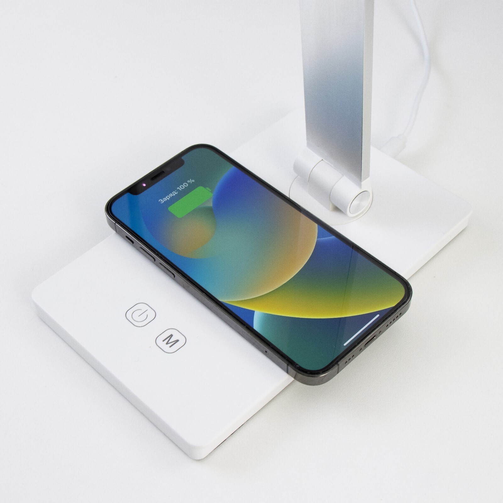Настольная лампа с беспроводной зарядкой "Алти" LED 7+5Вт USB бело-серебряный 12х19х72,5 см 908123