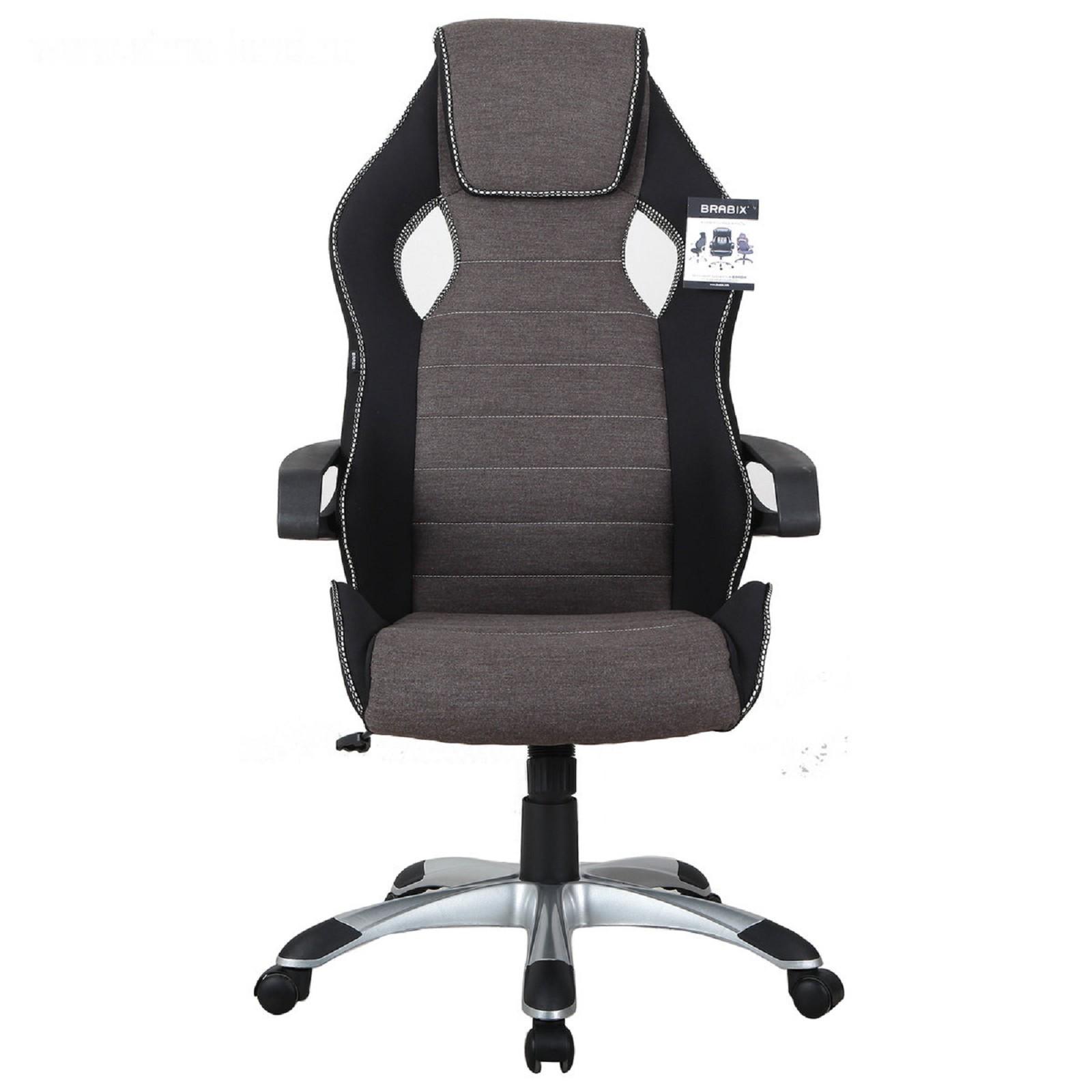Кресло игровое BRABIX "Techno GM-002", ткань, черное/серое, вставки белые